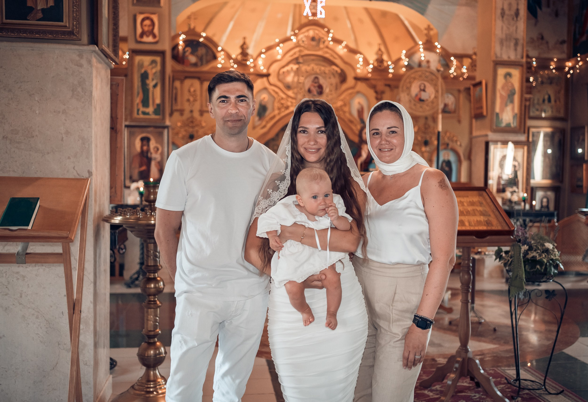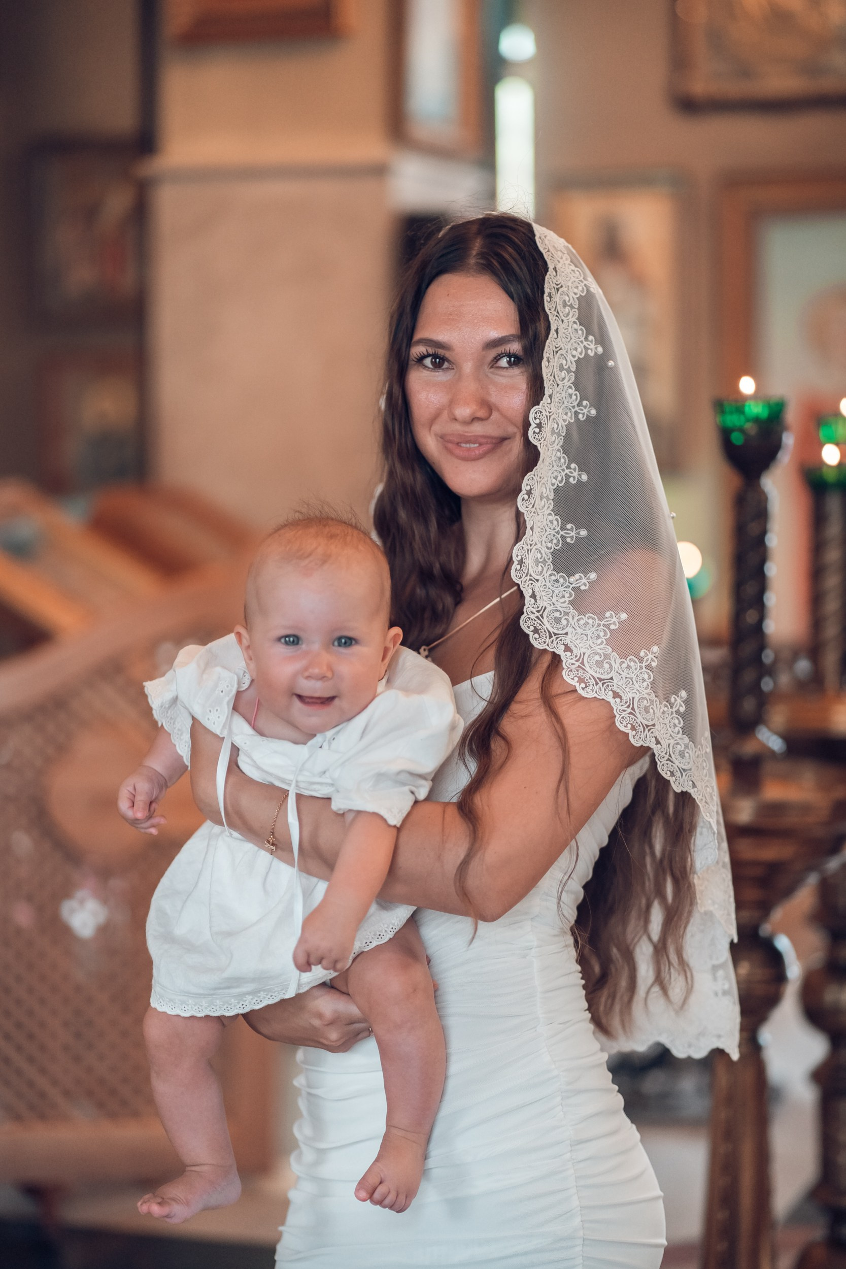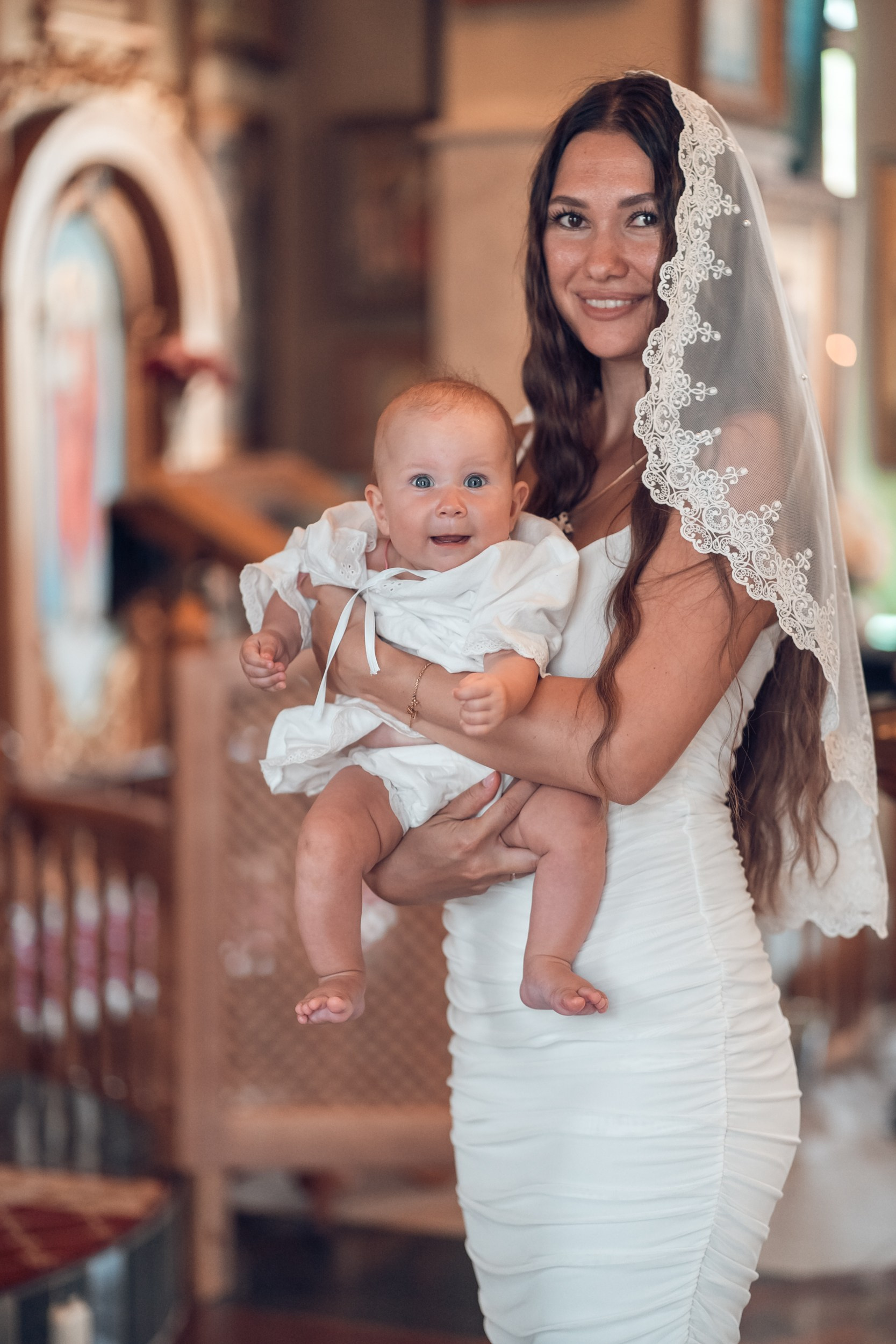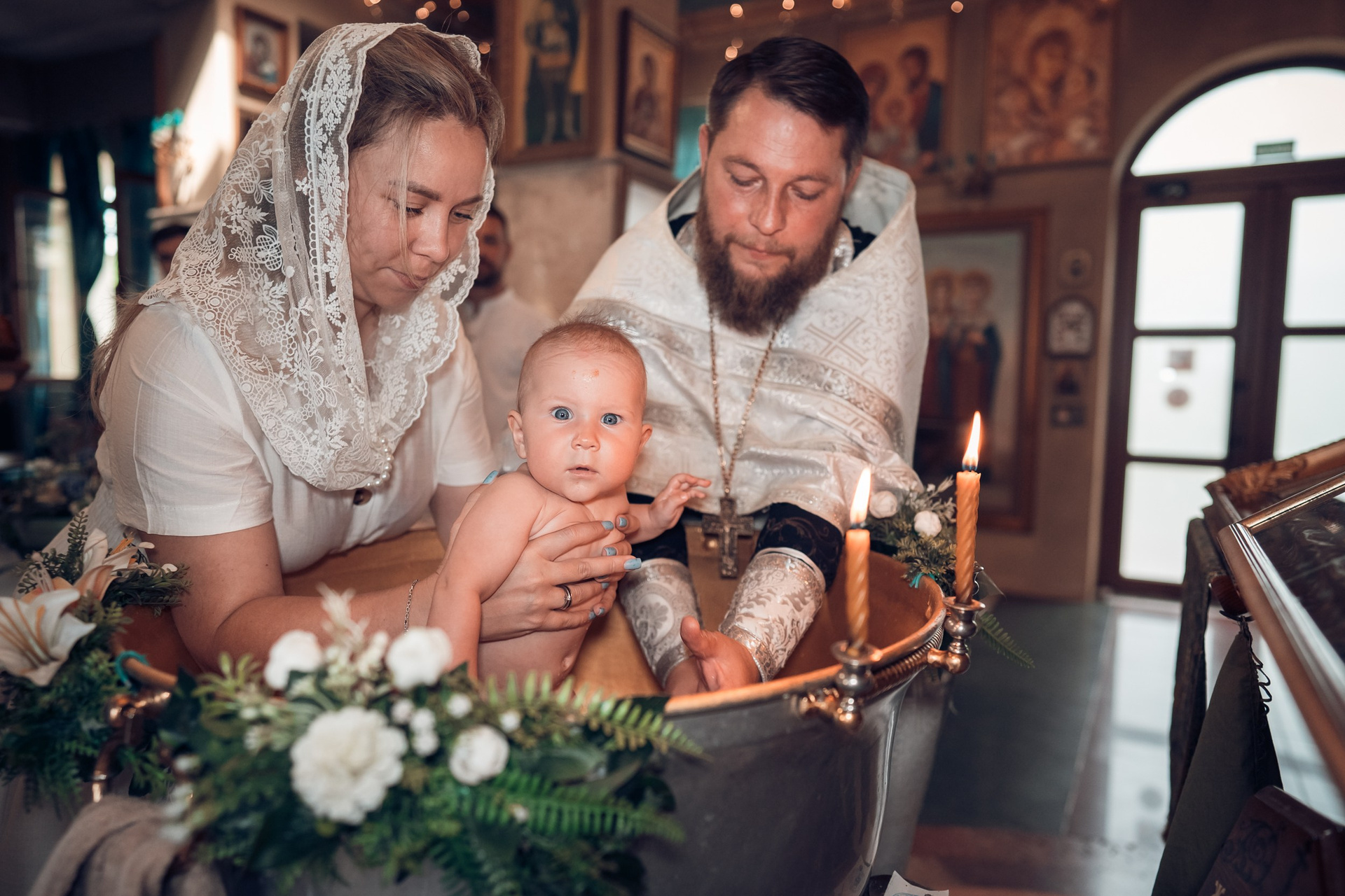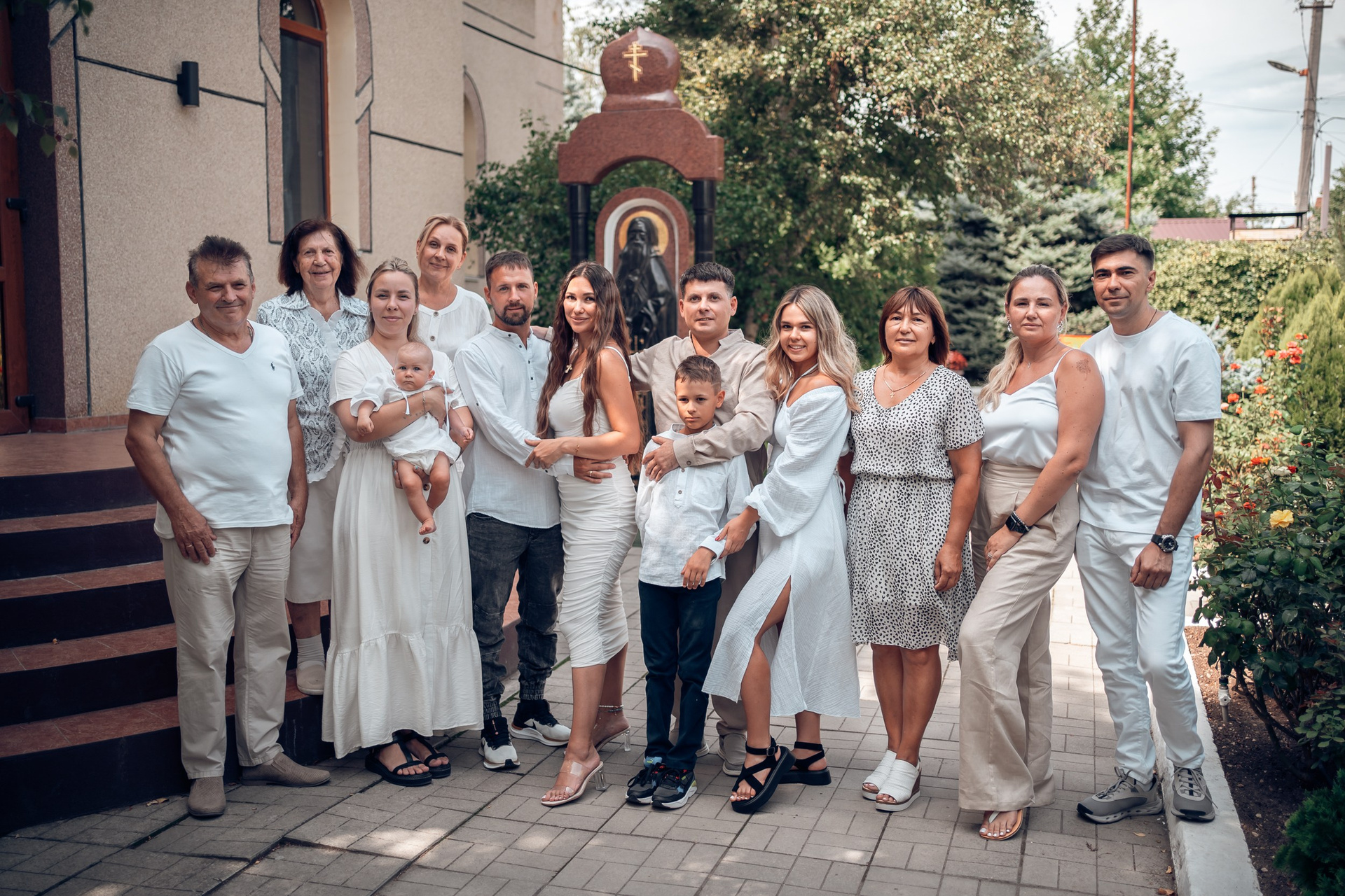 Съемка в 11 часов летнего дня. Стоит учесть. что в храме темные стены и минимальное освещение, поэтому для результата съемки обязательный выбор одежды светлых однотонных расцветок. Для малыша одежда светлых оттенков, наряд до окунания в купель и после купели крестильная рубашка (желательно фасон длинный без капюшона и завязок). Полотенце (крыжма) для принятия крещаемого из купели. Крестик на веревочке. Дополнительно пеленку однотонную.