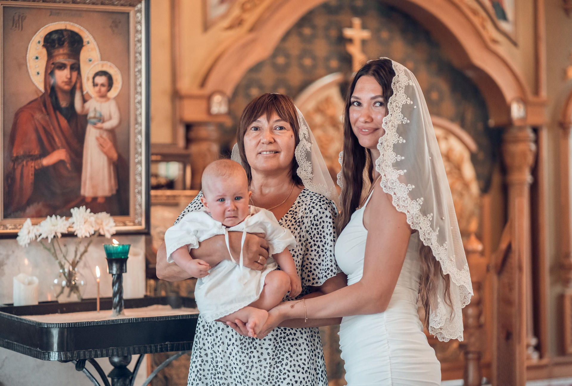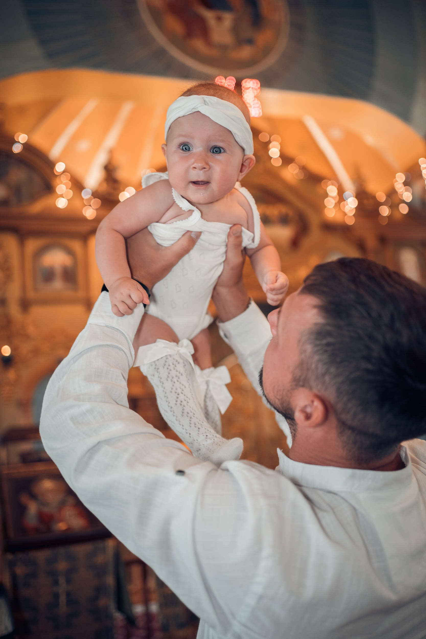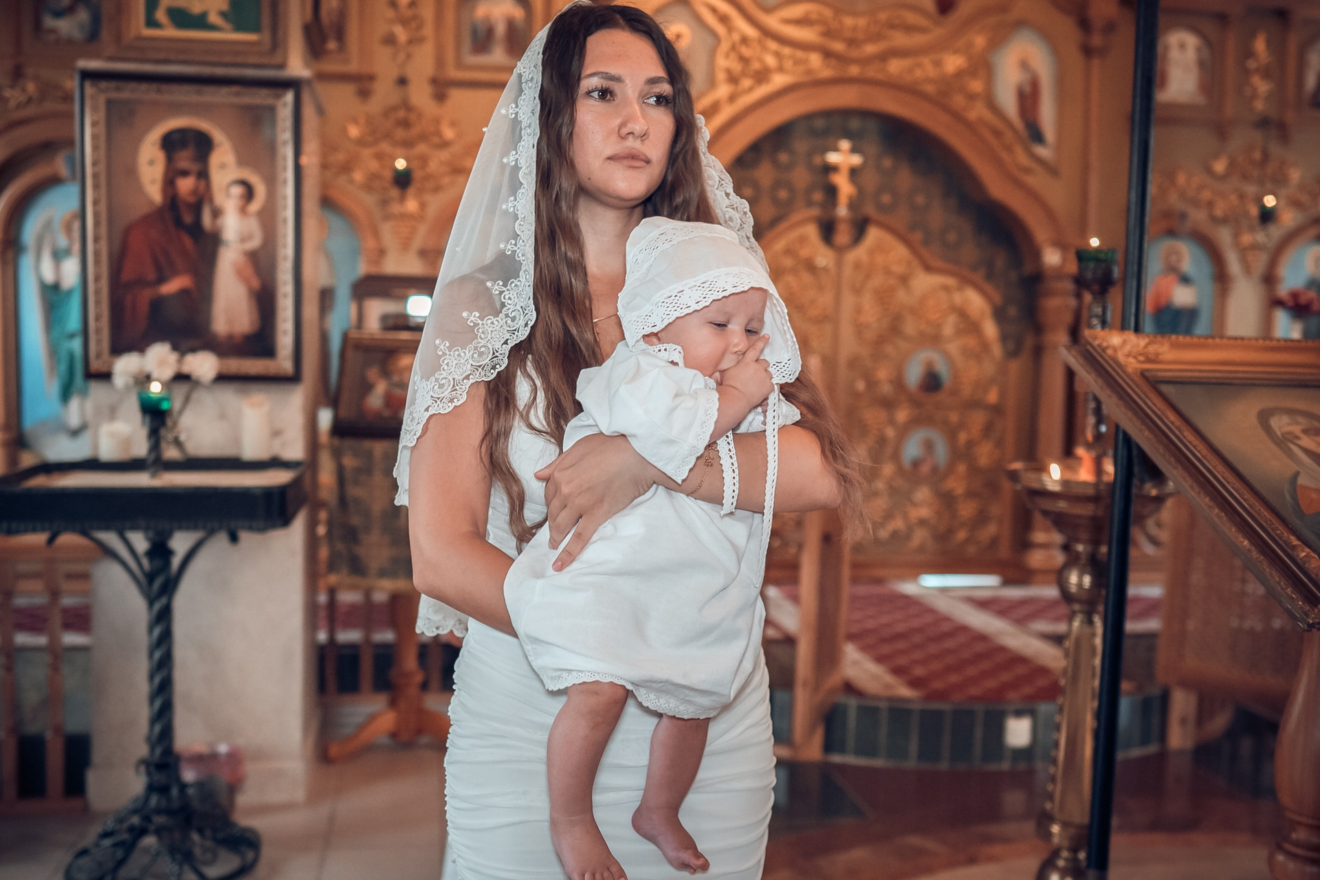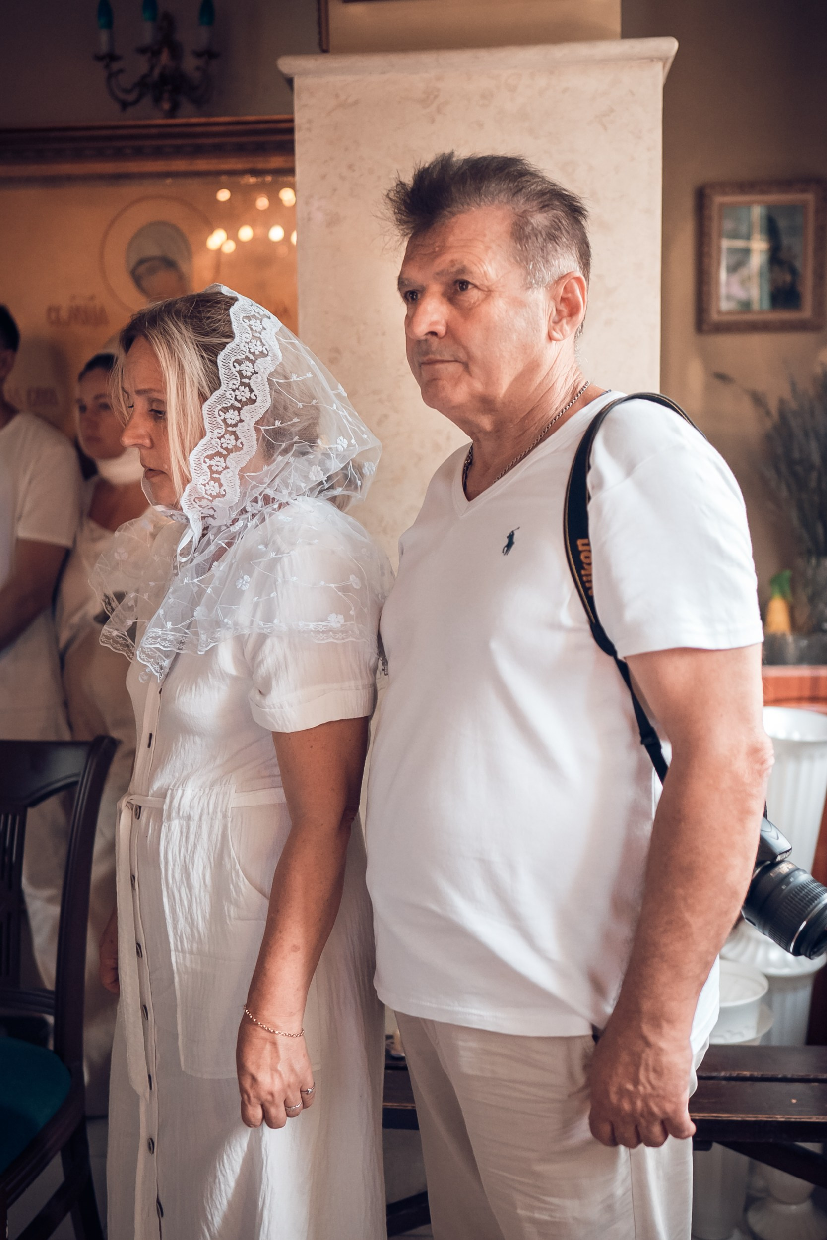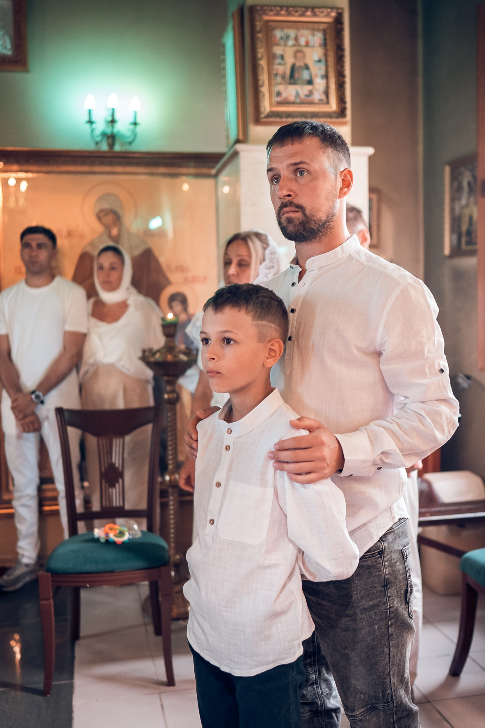 Съемка в 11 часов летнего дня. Стоит учесть. что в храме темные стены и минимальное освещение, поэтому для результата съемки обязательный выбор одежды светлых однотонных расцветок. Для малыша одежда светлых оттенков, наряд до окунания в купель и после купели крестильная рубашка (желательно фасон длинный без капюшона и завязок). Полотенце (крыжма) для принятия крещаемого из купели. Крестик на веревочке. Дополнительно пеленку однотонную.
