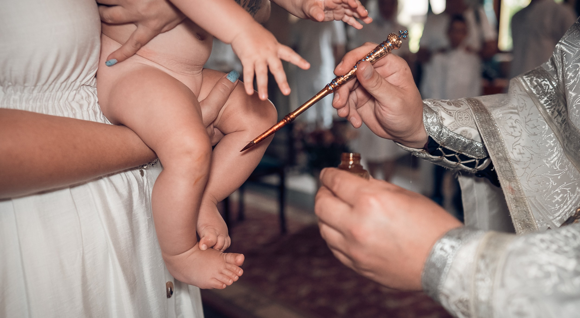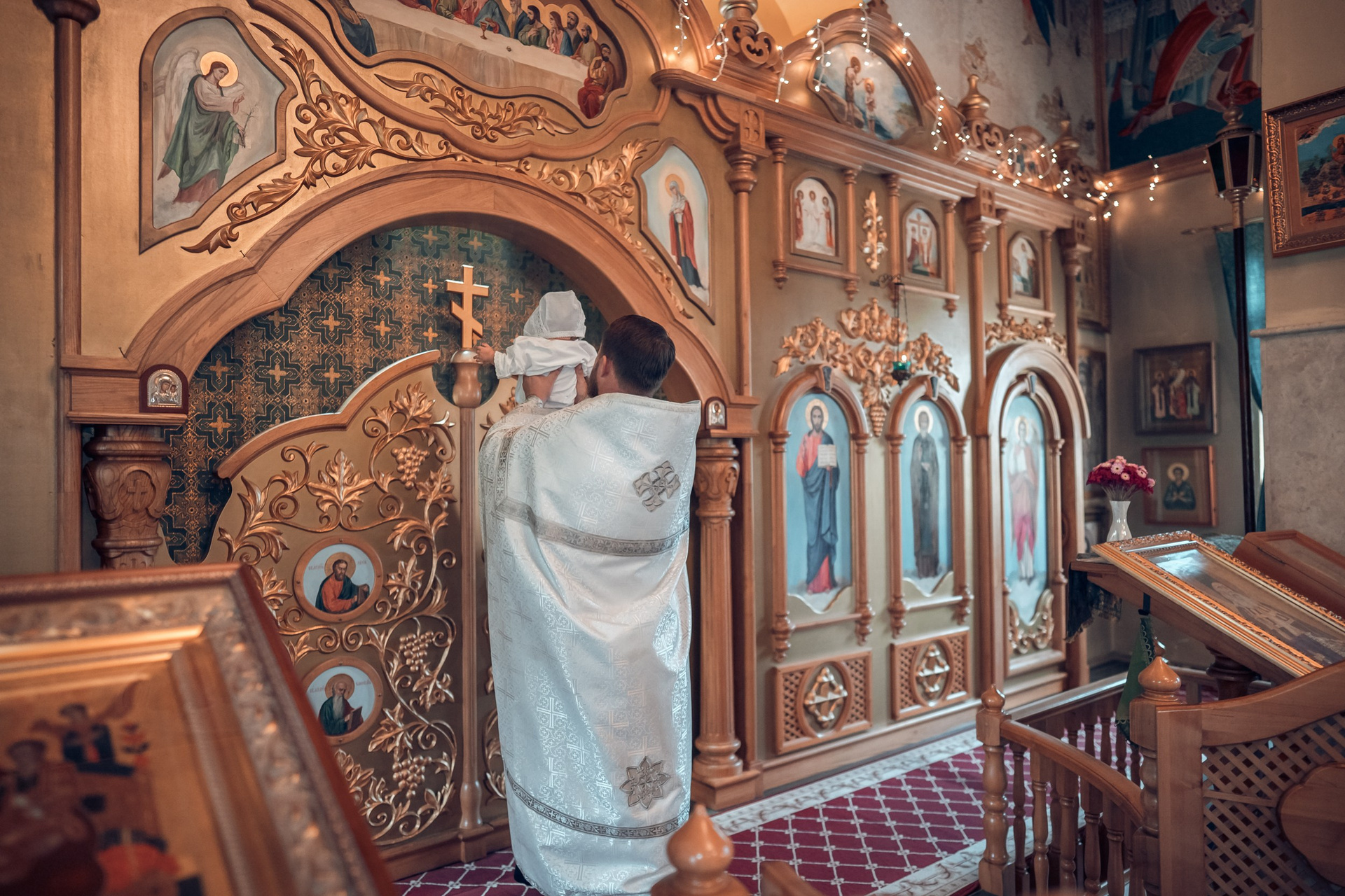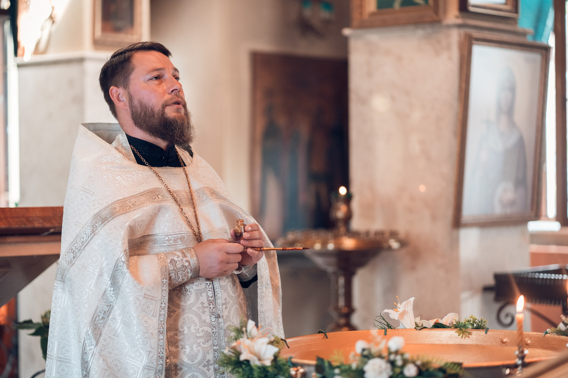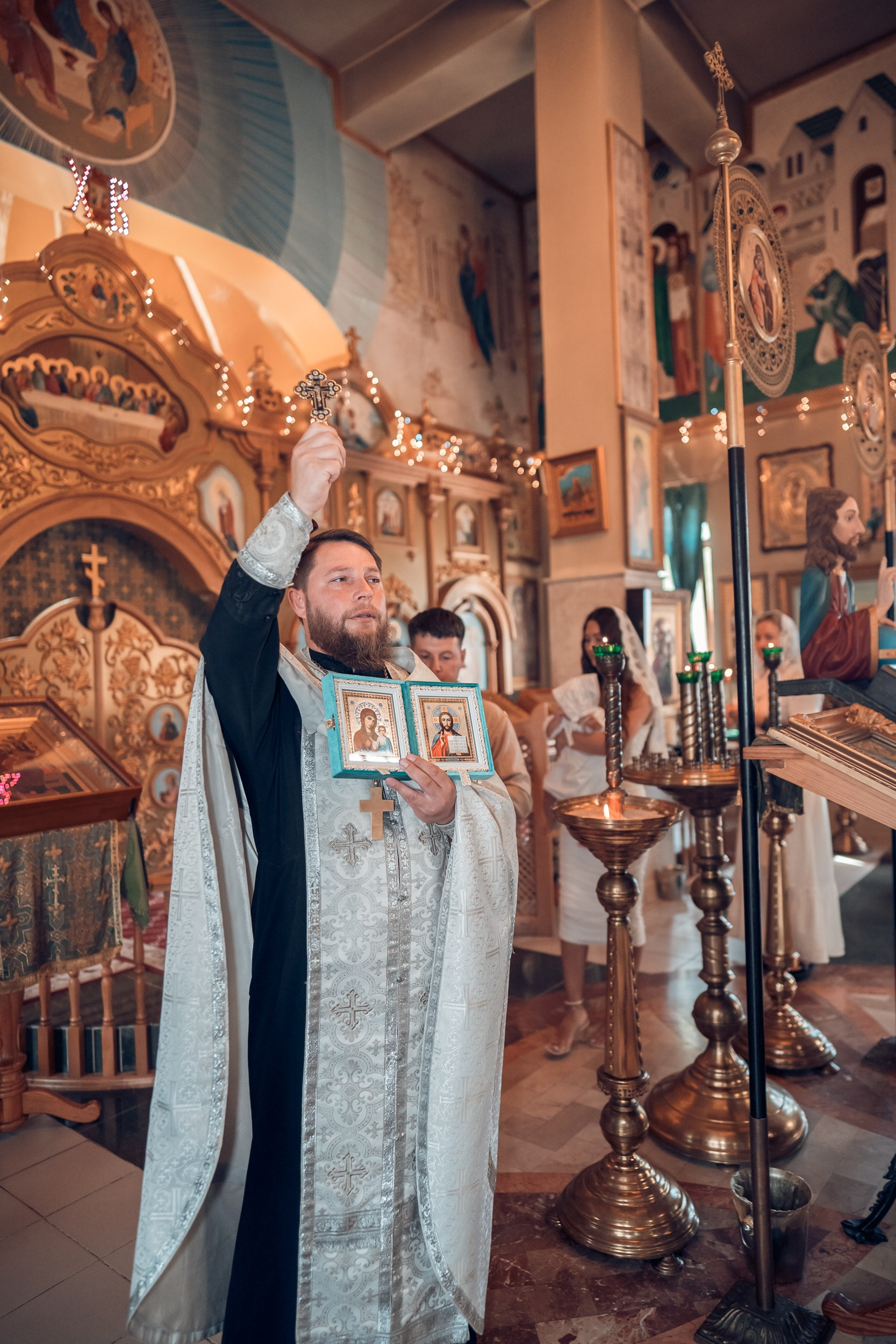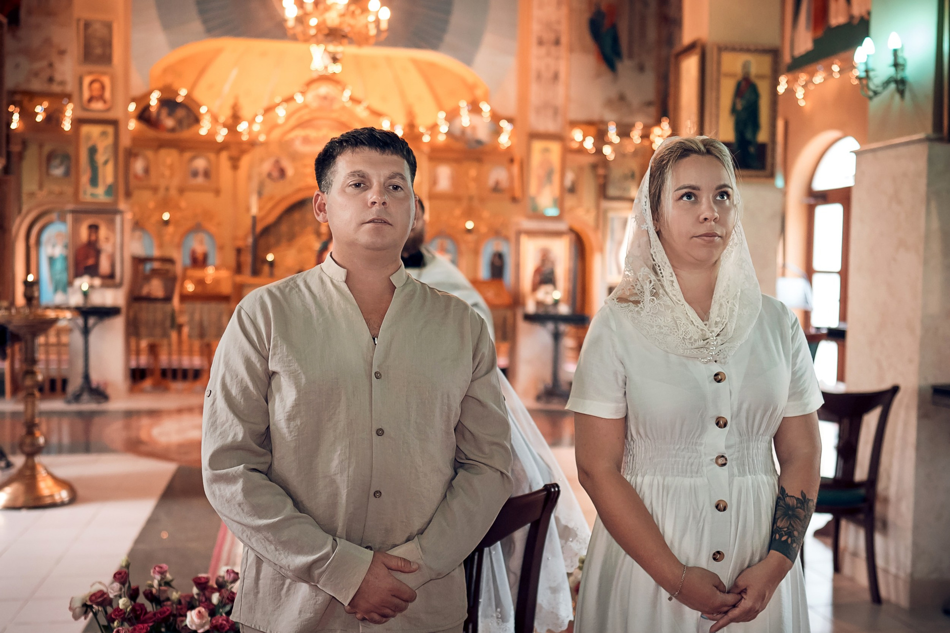 Съемка в 11 часов летнего дня. Стоит учесть. что в храме темные стены и минимальное освещение, поэтому для результата съемки обязательный выбор одежды светлых однотонных расцветок. Для малыша одежда светлых оттенков, наряд до окунания в купель и после купели крестильная рубашка (желательно фасон длинный без капюшона и завязок). Полотенце (крыжма) для принятия крещаемого из купели. Крестик на веревочке. Дополнительно пеленку однотонную.