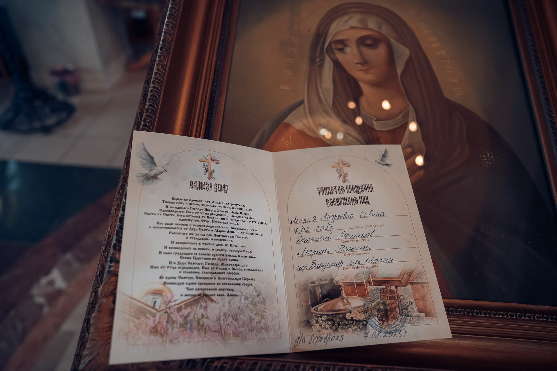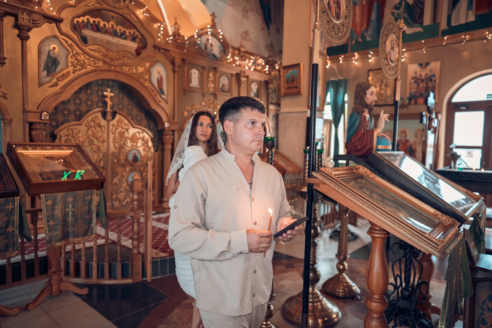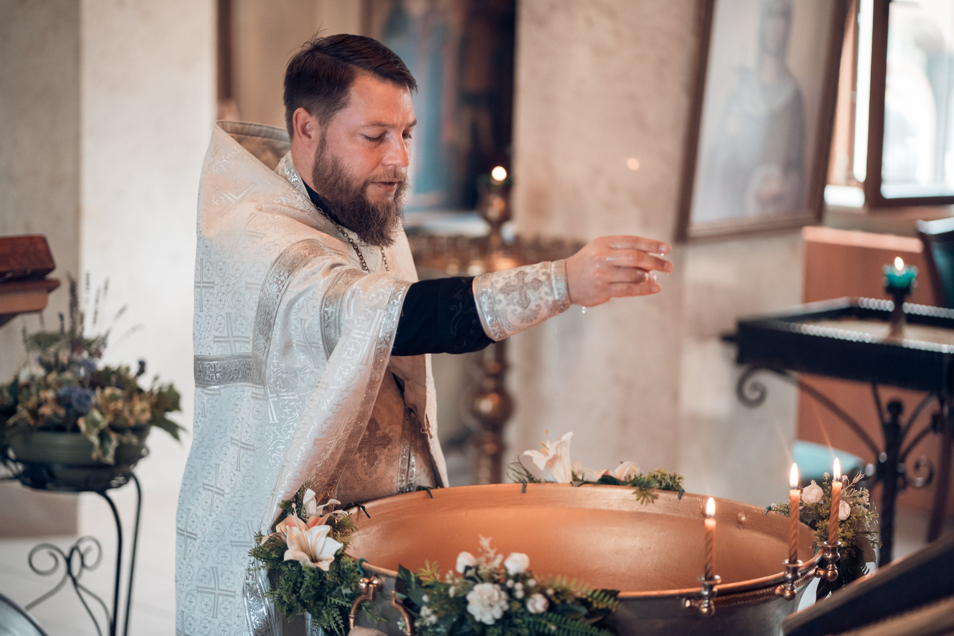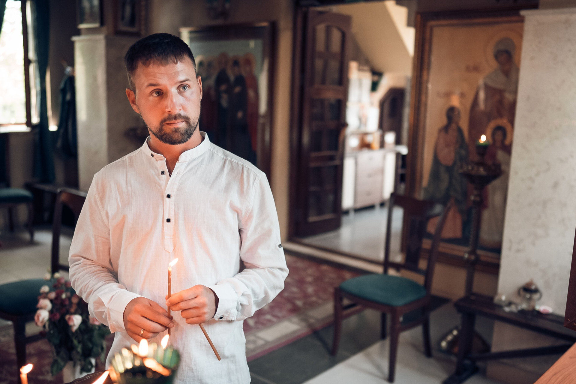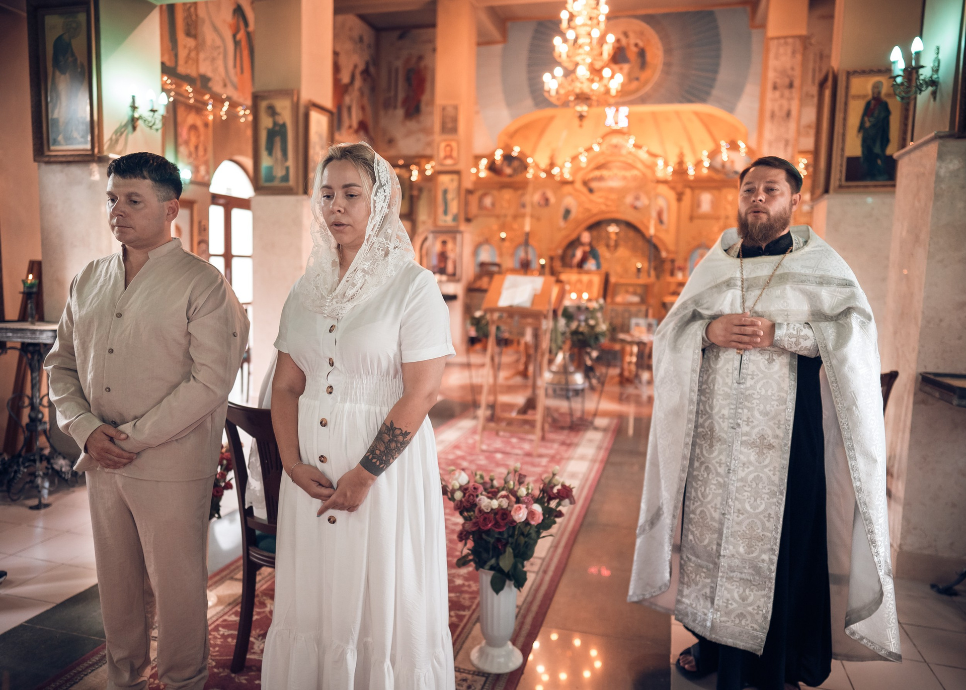 Съемка в 11 часов летнего дня. Стоит учесть. что в храме темные стены и минимальное освещение, поэтому для результата съемки обязательный выбор одежды светлых однотонных расцветок. Для малыша одежда светлых оттенков, наряд до окунания в купель и после купели крестильная рубашка (желательно фасон длинный без капюшона и завязок). Полотенце (крыжма) для принятия крещаемого из купели. Крестик на веревочке. Дополнительно пеленку однотонную.