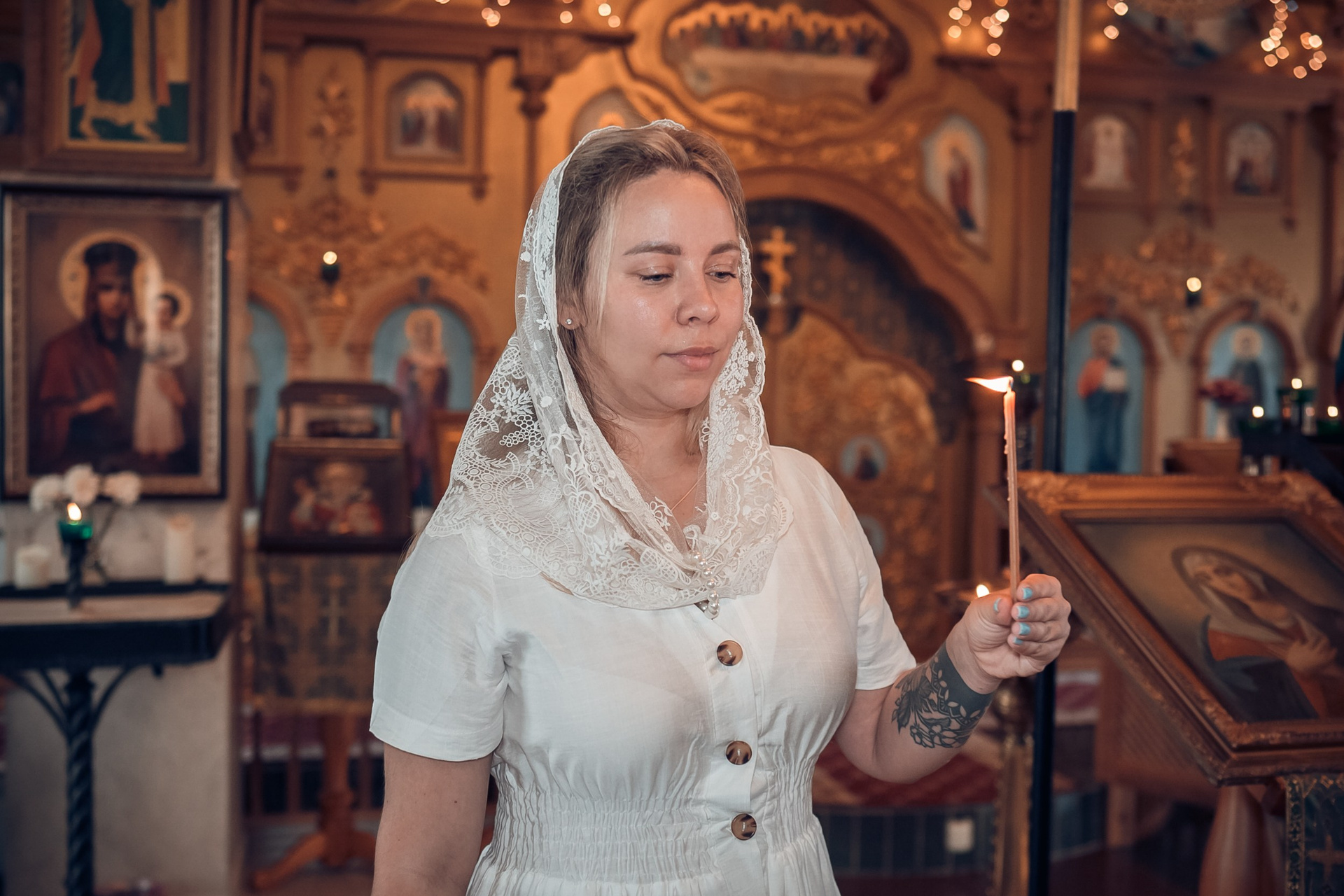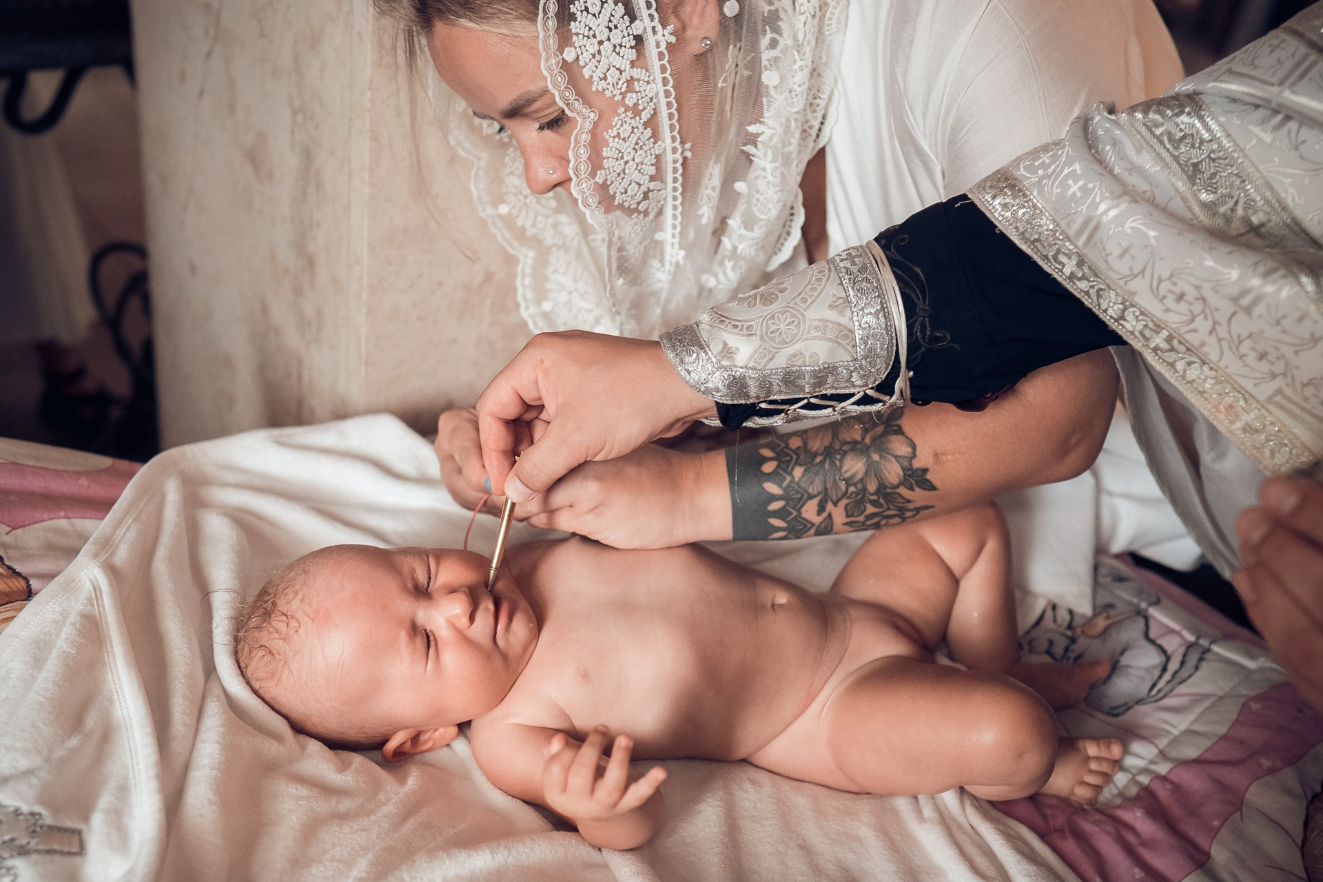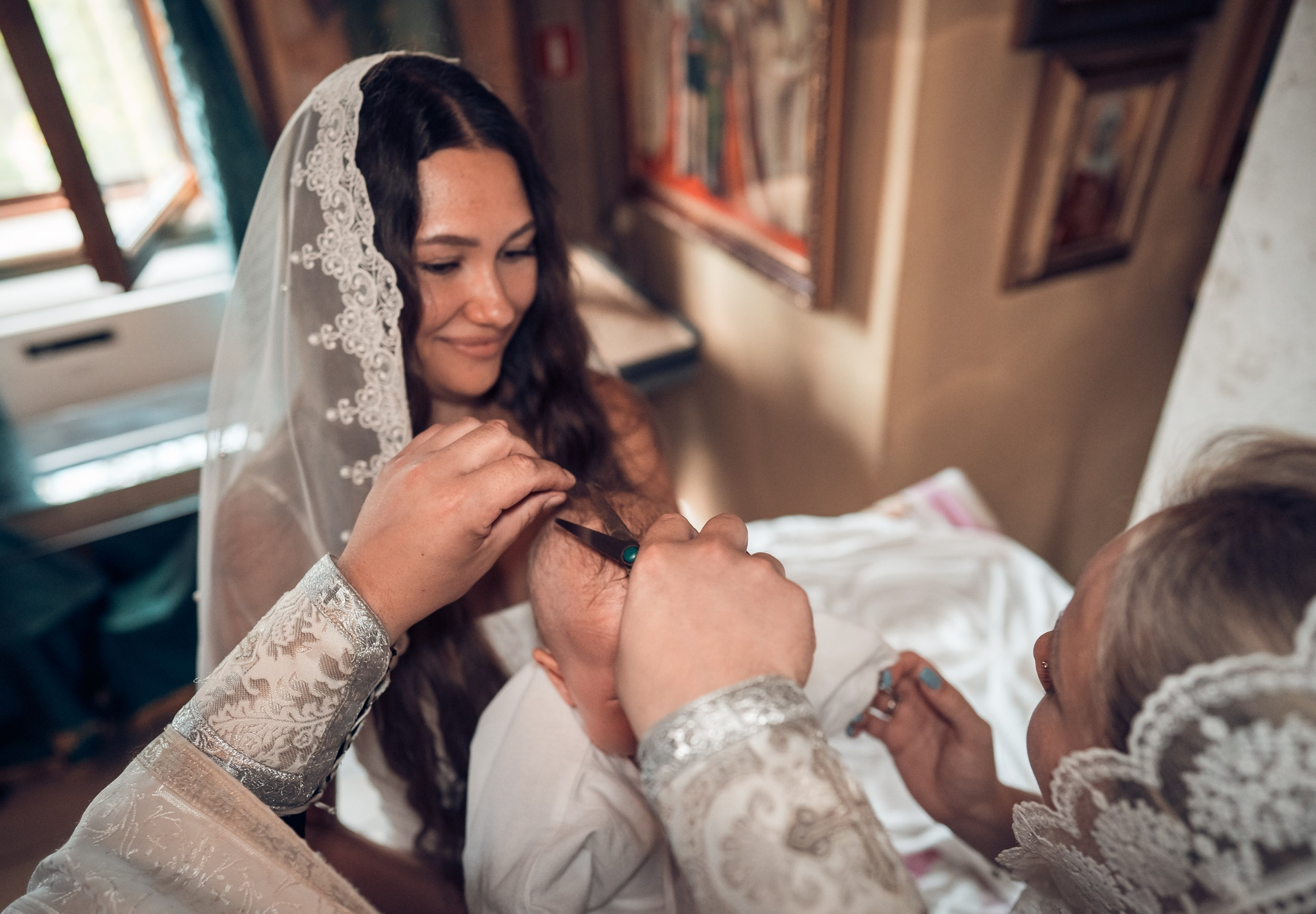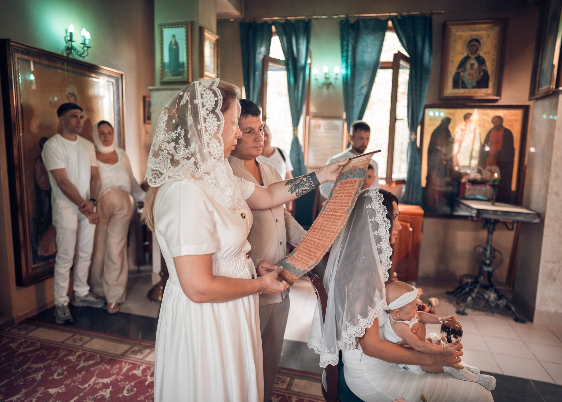 Женские платки предоставлены фотогероиням в аренду из коллекции фотографа покровов для Таинств.