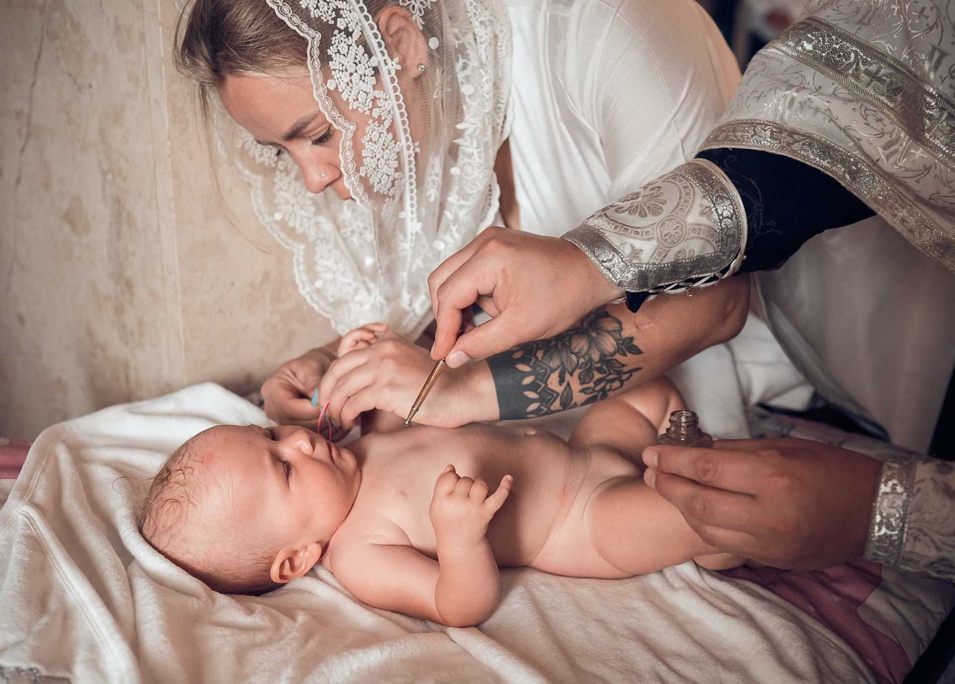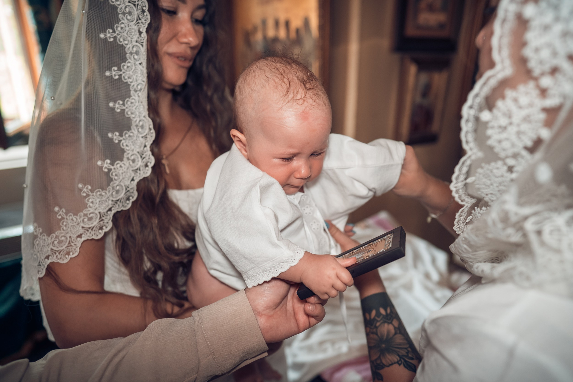 Пакет Таинство+Ретушь: репортажная фотосъемка всего Таинства, детали крещения, постановочная съемка после Таинства с крещаемой, родителями и гостями. Обработка фотографий в художественной цветокоррекции (без ретуши), первые 10 фотографий обработаны согласно выбранному пакету в художественной ретуши для возможности распечатать фотографии без потери качества.