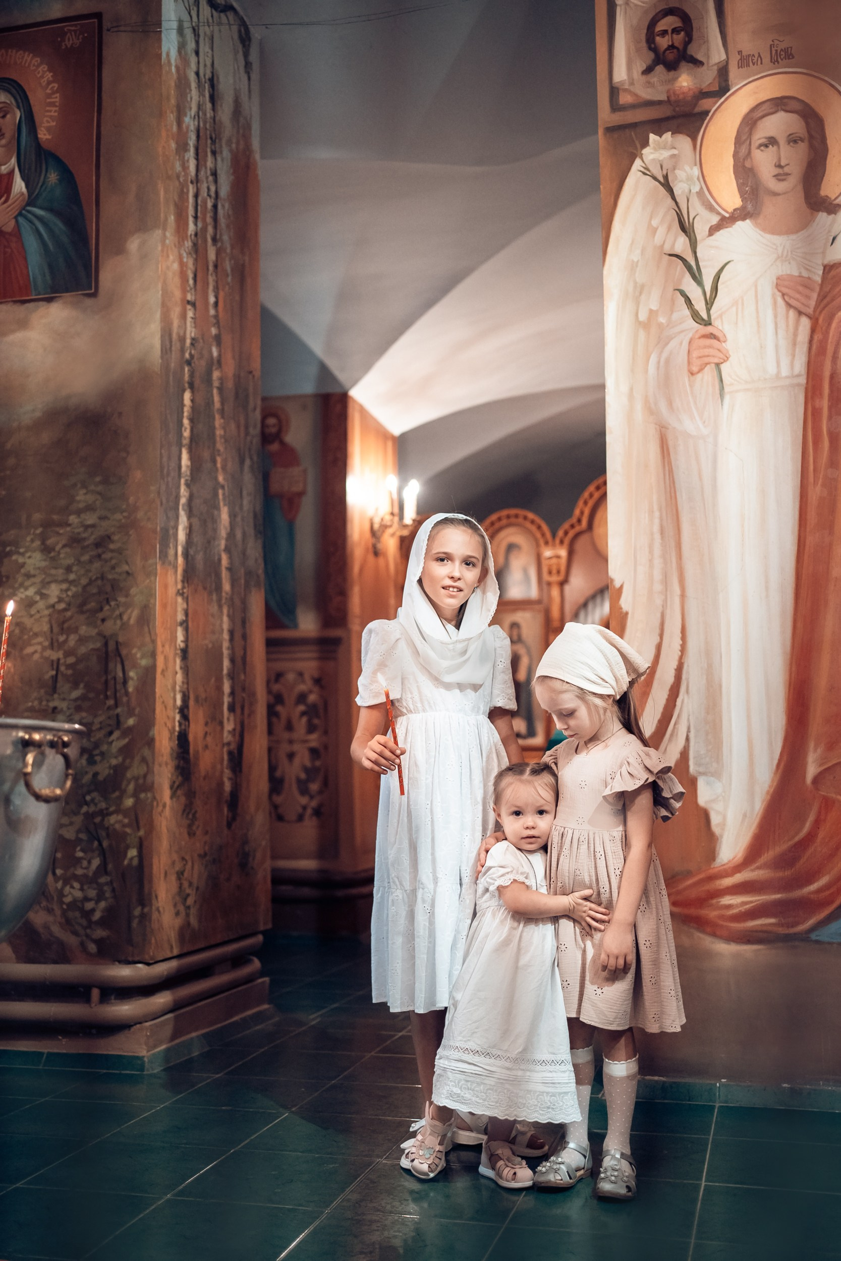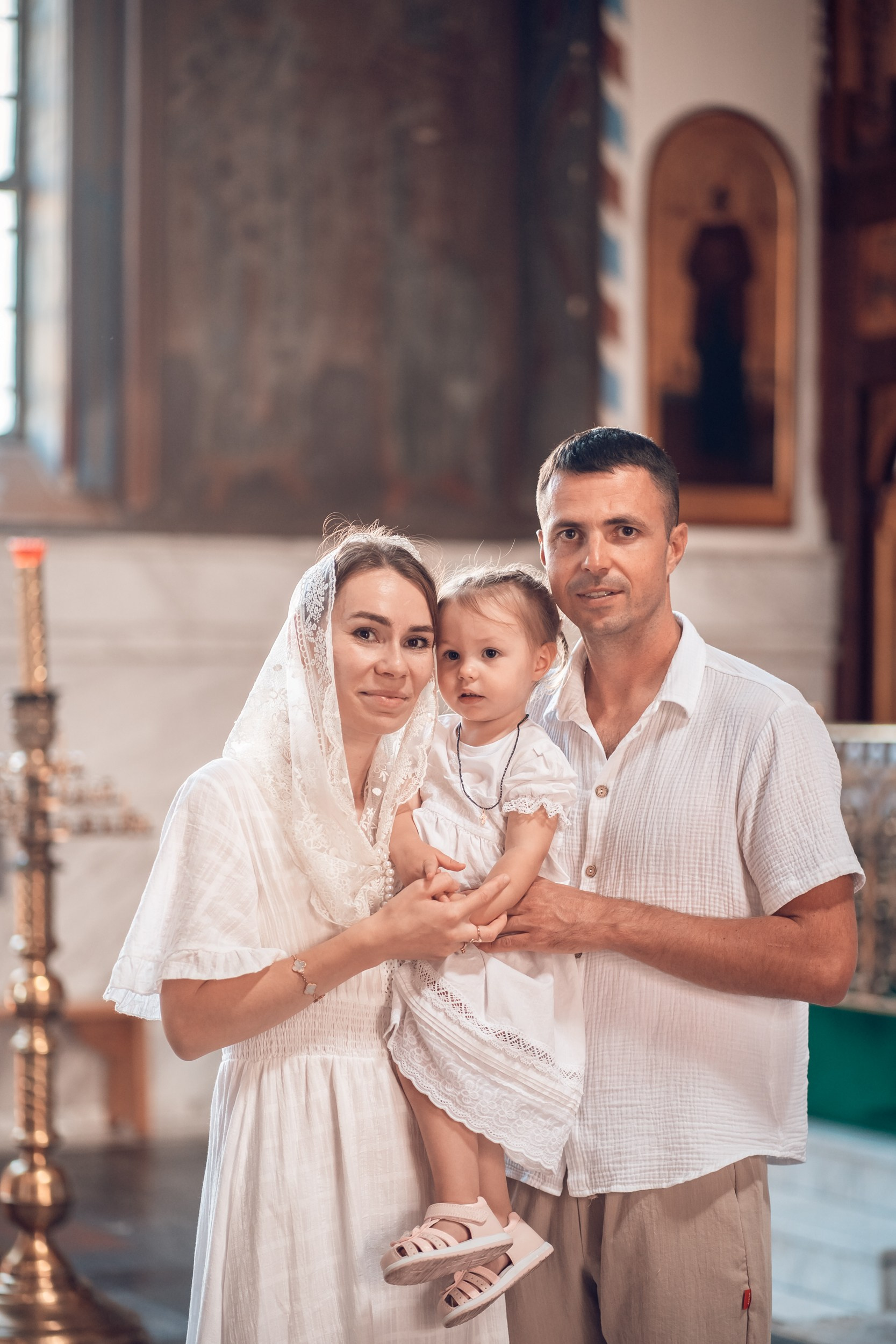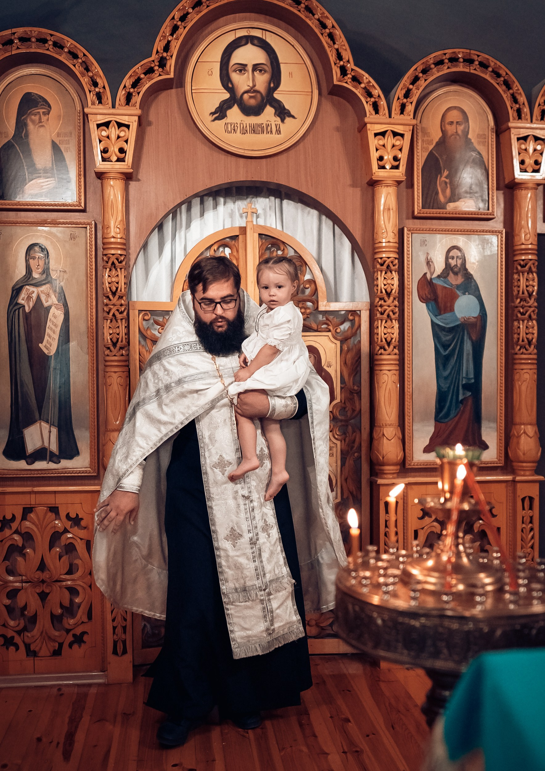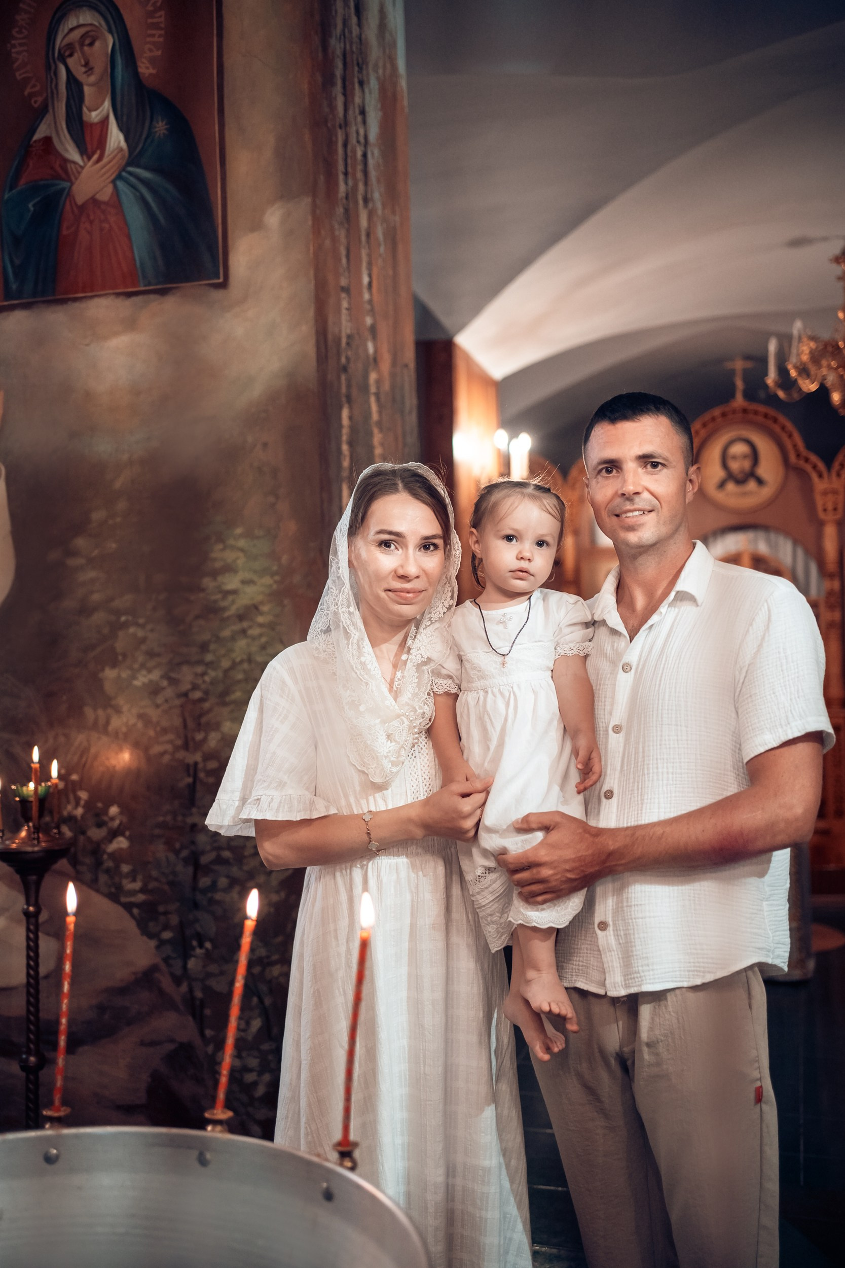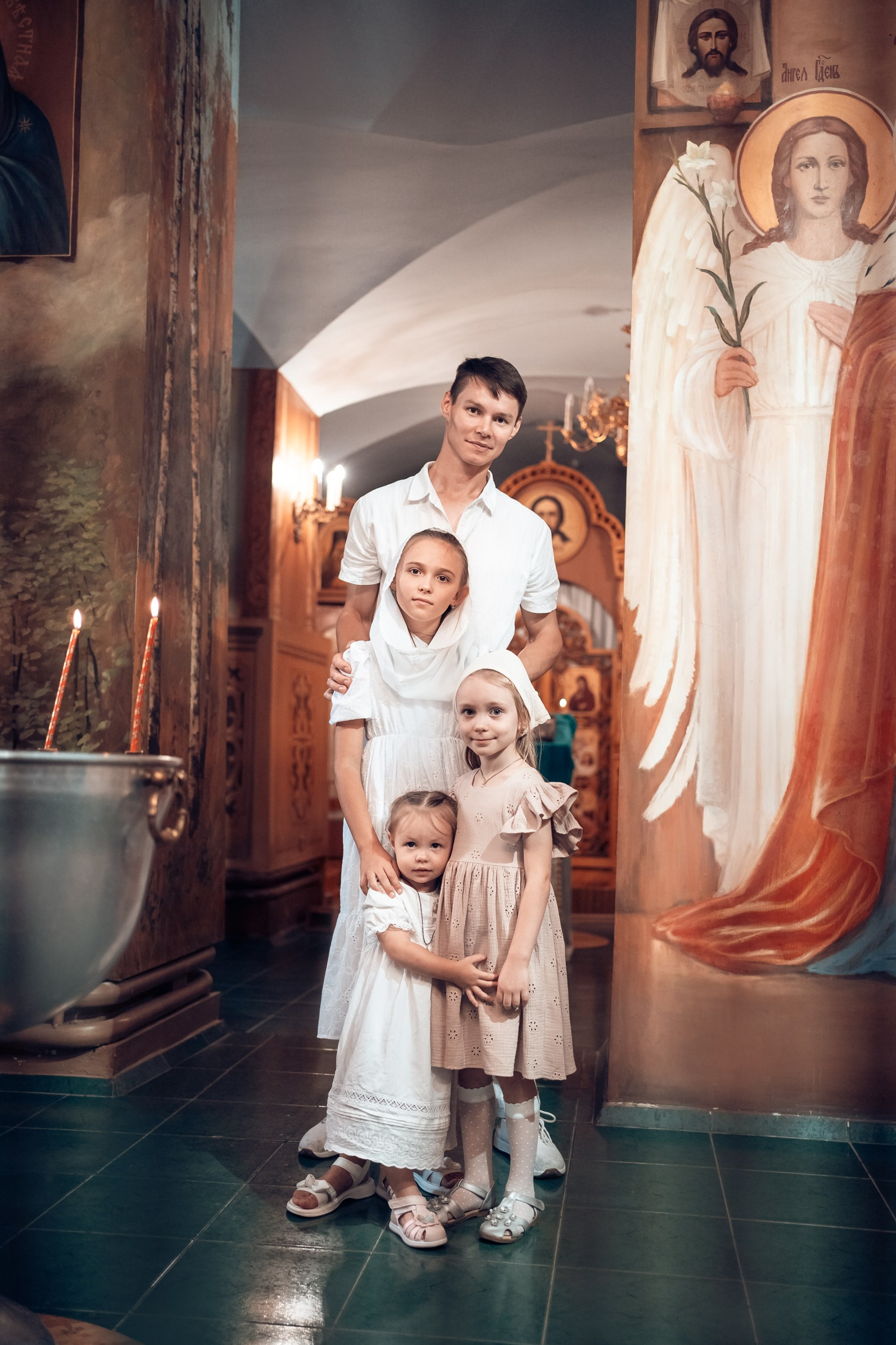Репортажная съемка основных действий Таинства крещения и постановочная съемка с родными в храме и на улице. Фотографии обработаны в авторской цветокоррекции (без детальной ретуши). Срок выполнения 12 дней.