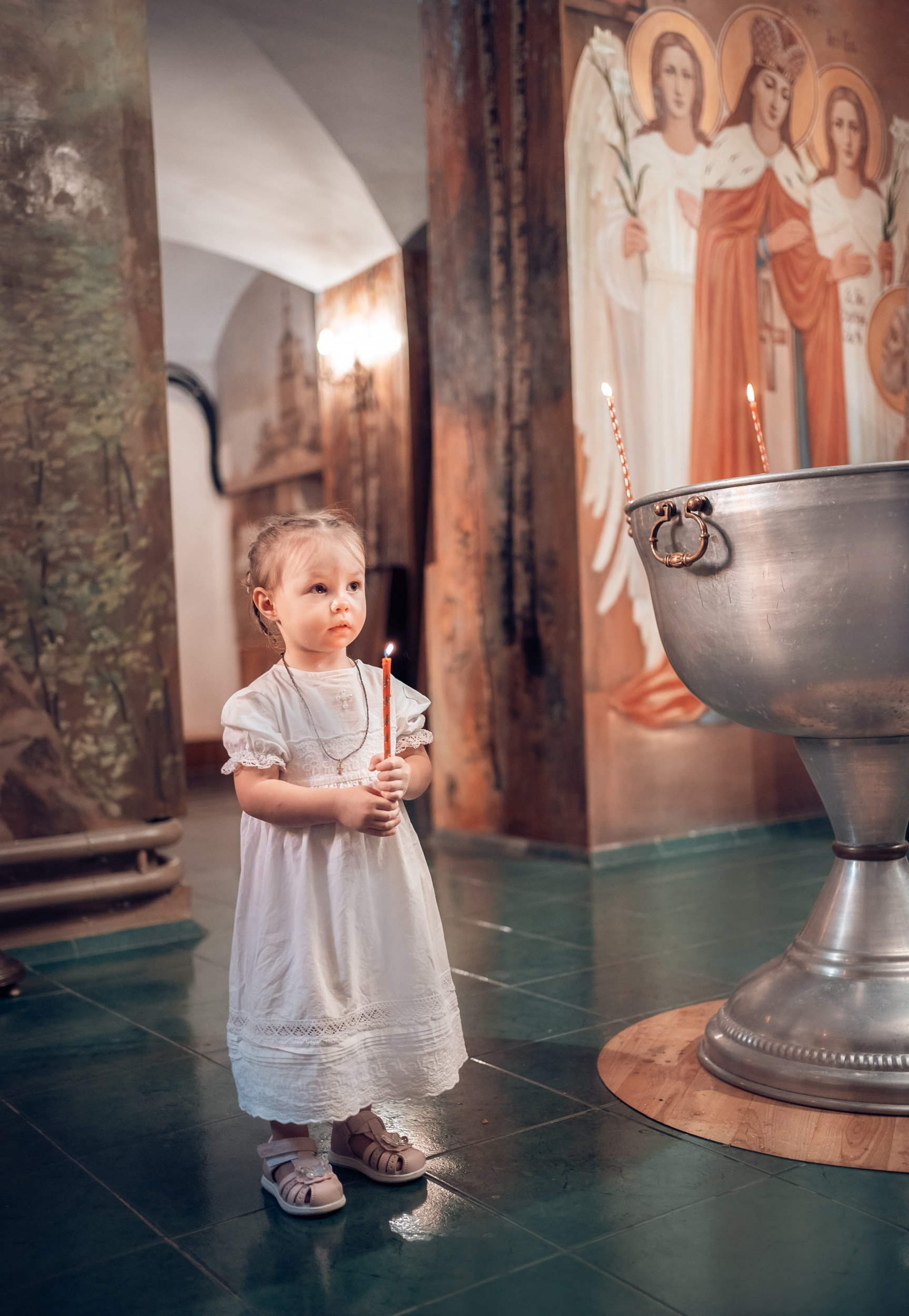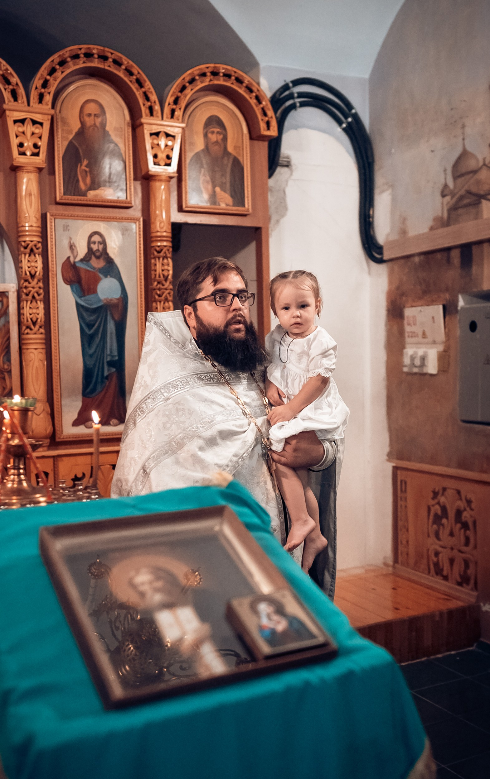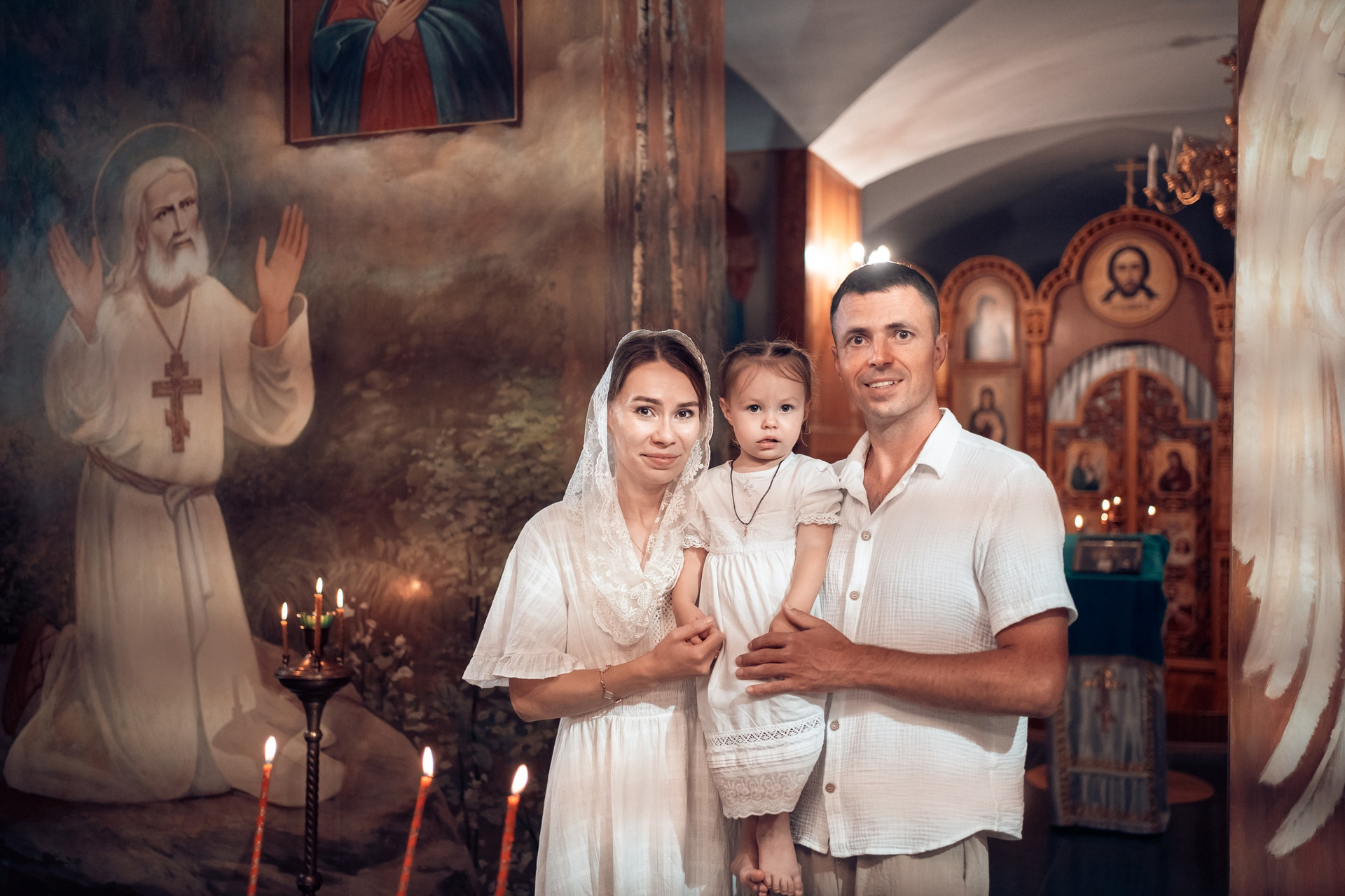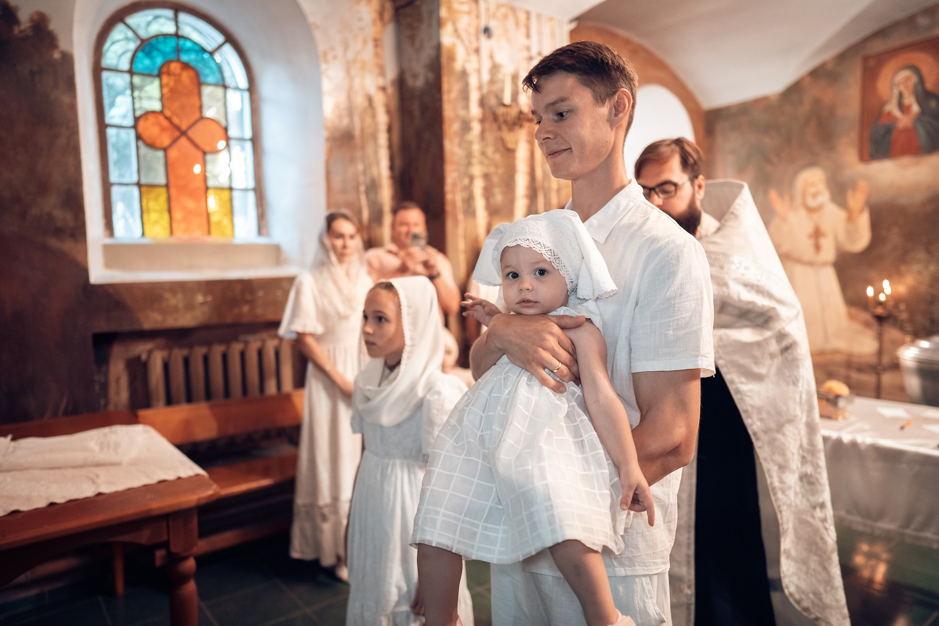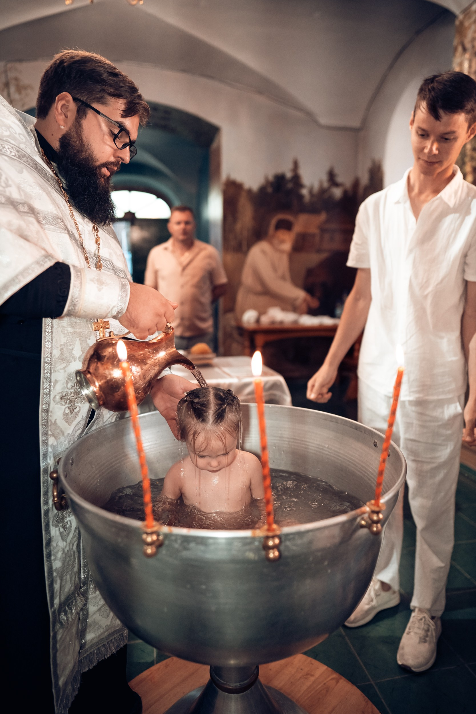 Репортажная съемка основных действий Таинства крещения и постановочная съемка с родными в храме и на улице. Фотографии обработаны в авторской цветокоррекции (без детальной ретуши). Срок выполнения 12 дней.