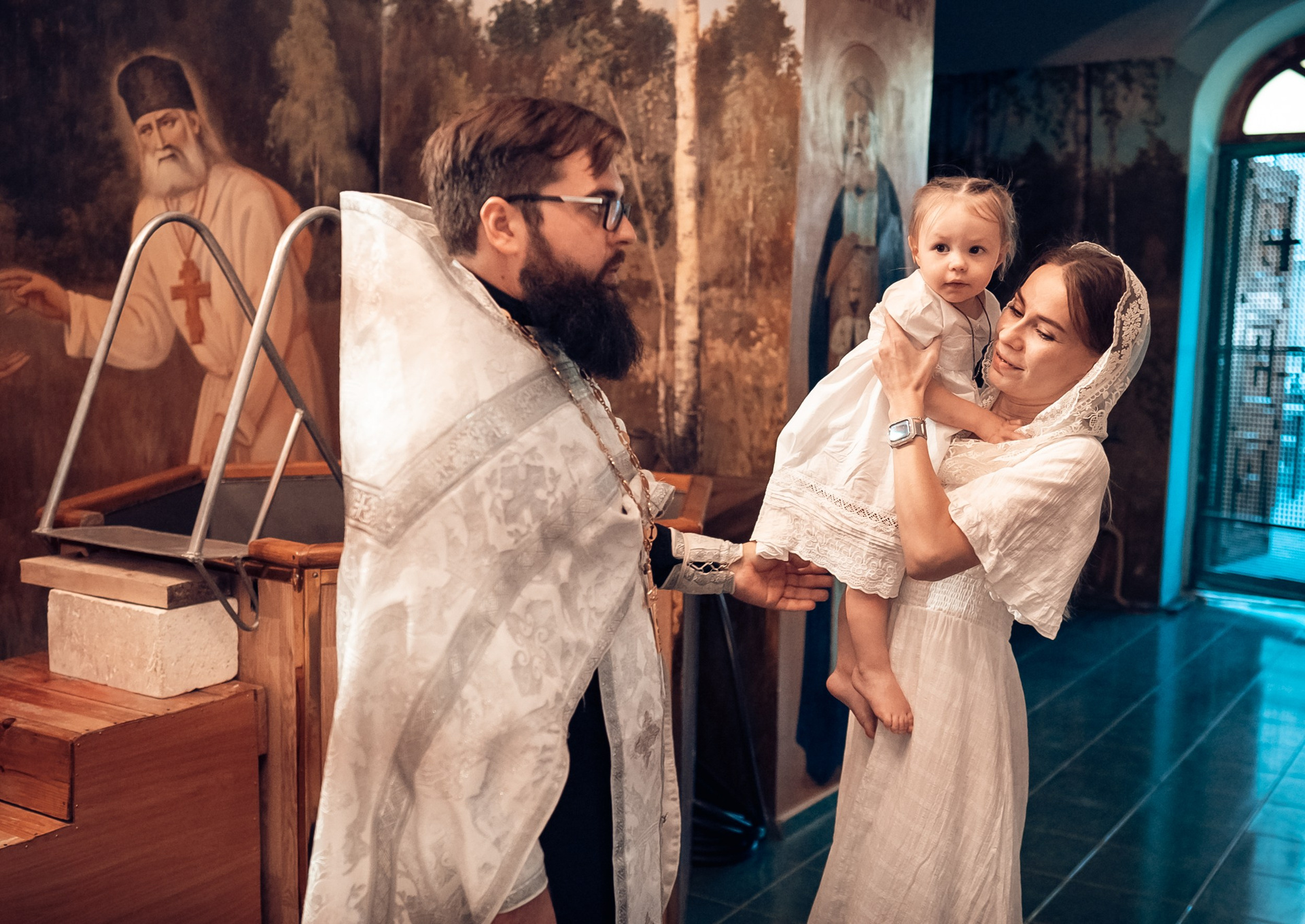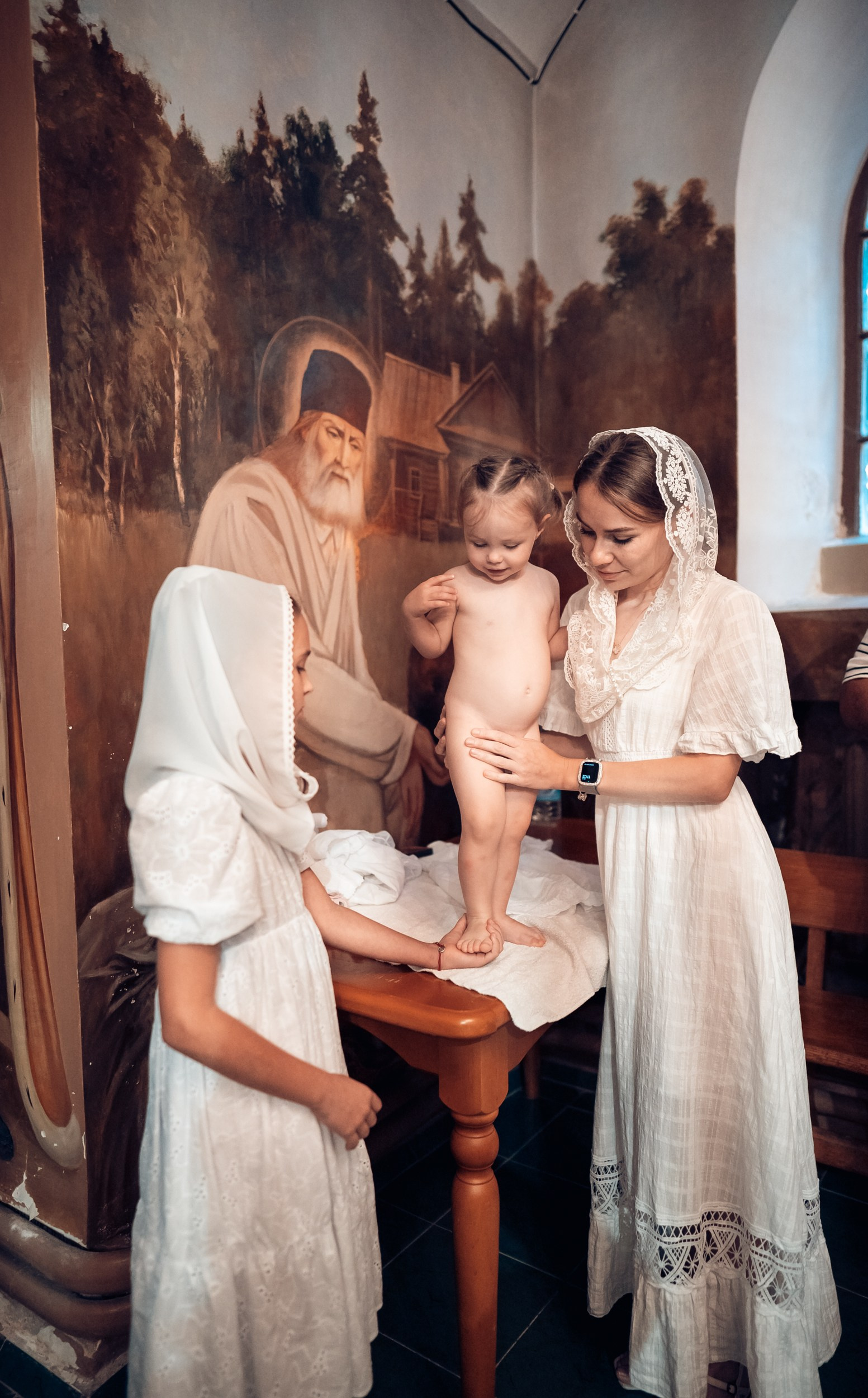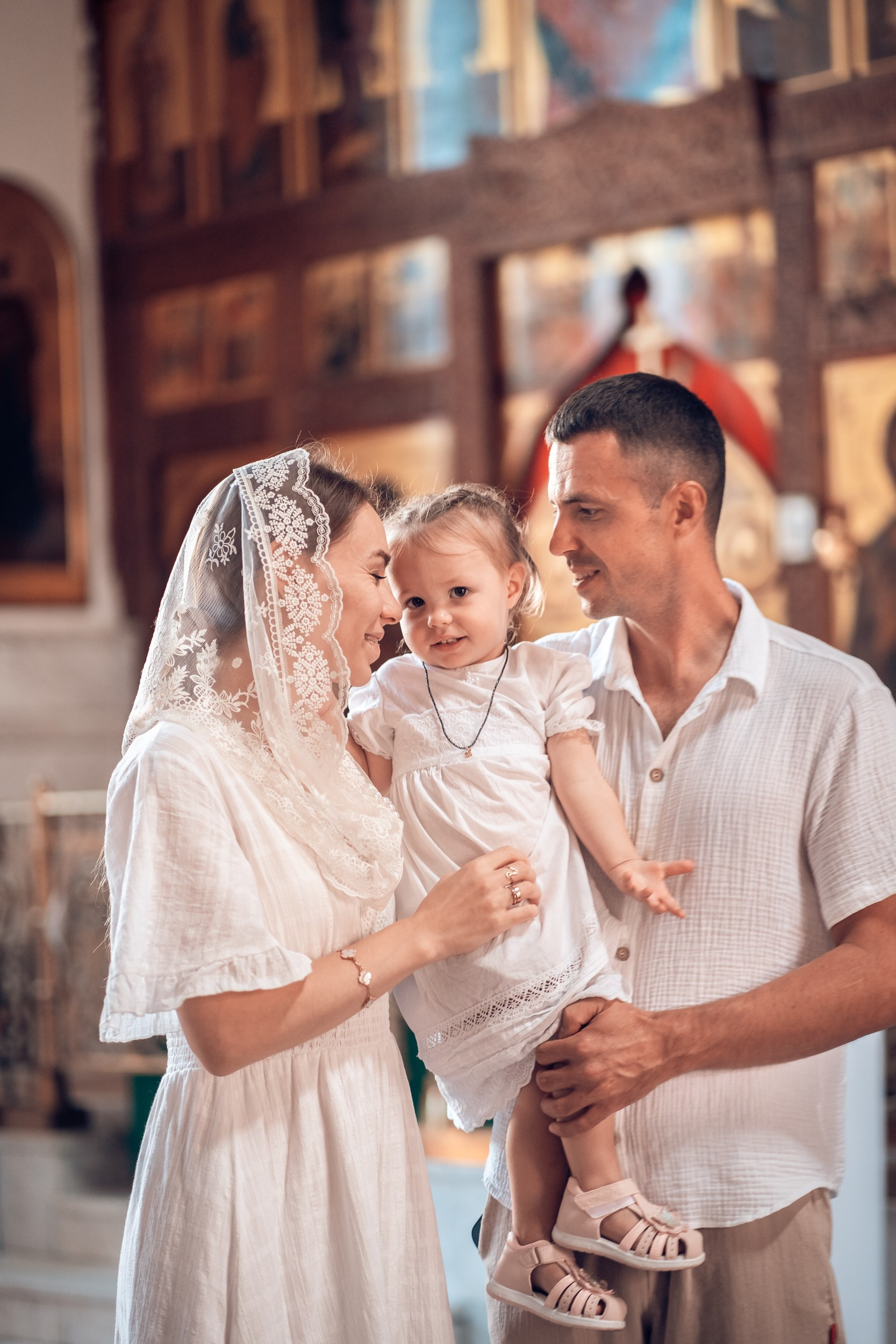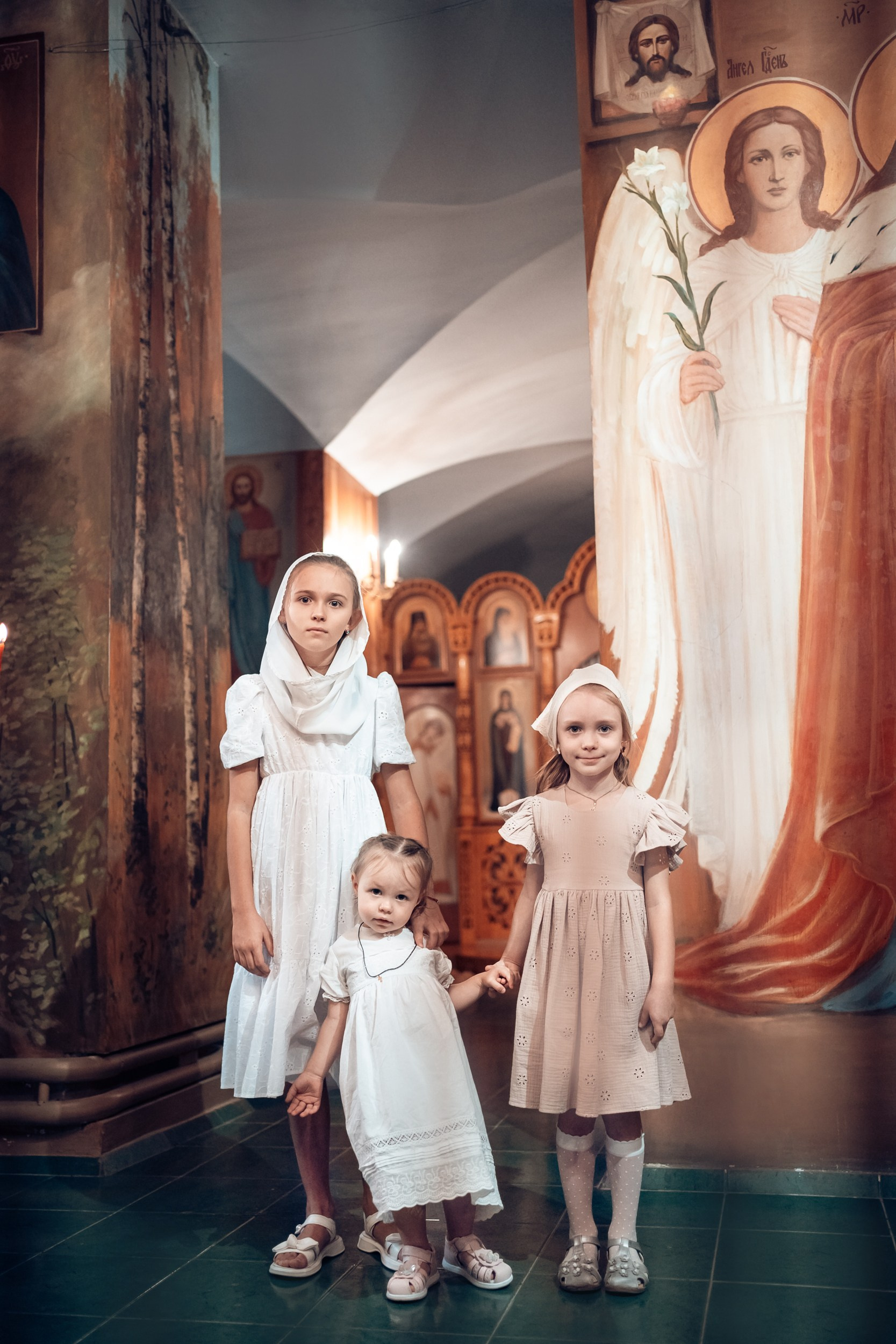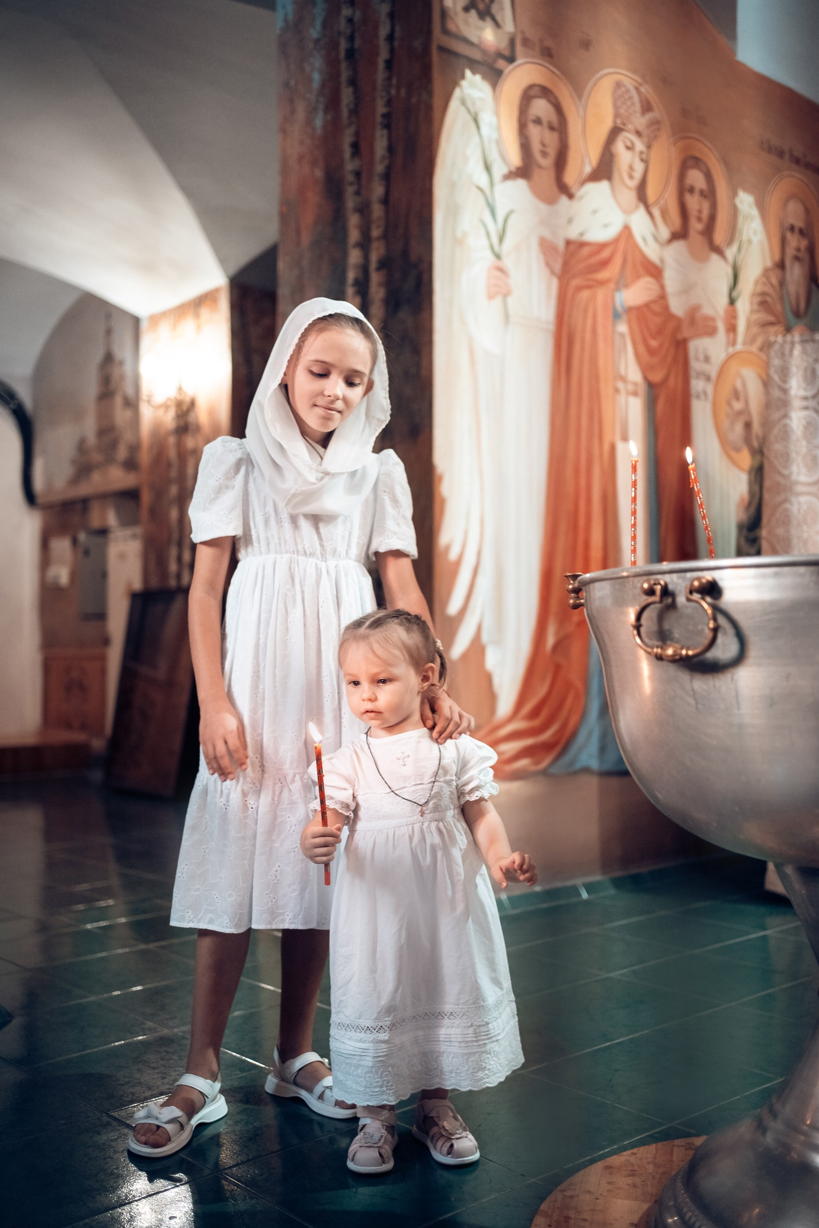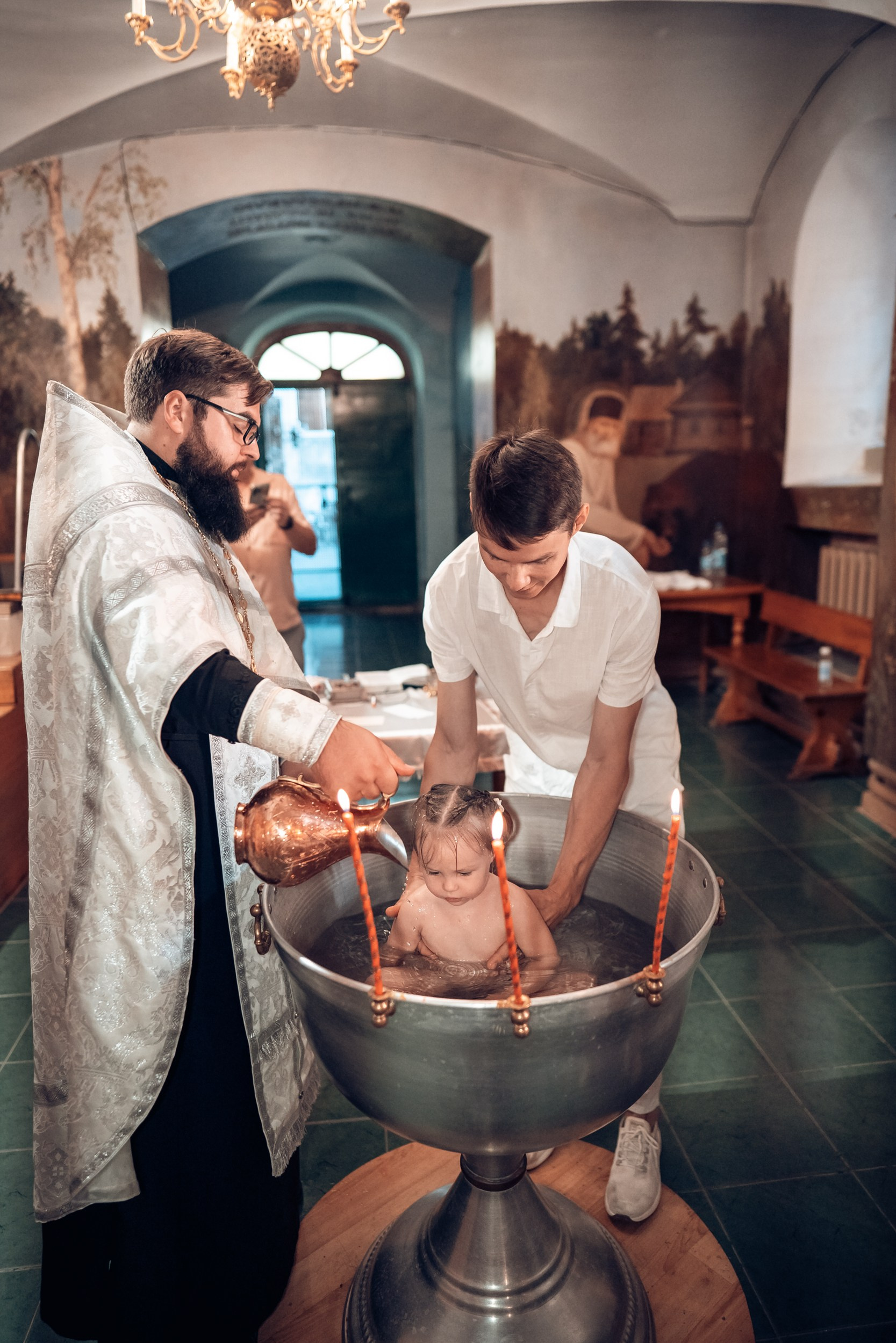 Репортажная съемка основных действий Таинства крещения и постановочная съемка с родными в храме и на улице. Фотографии обработаны в авторской цветокоррекции (без детальной ретуши). Срок выполнения 12 дней.