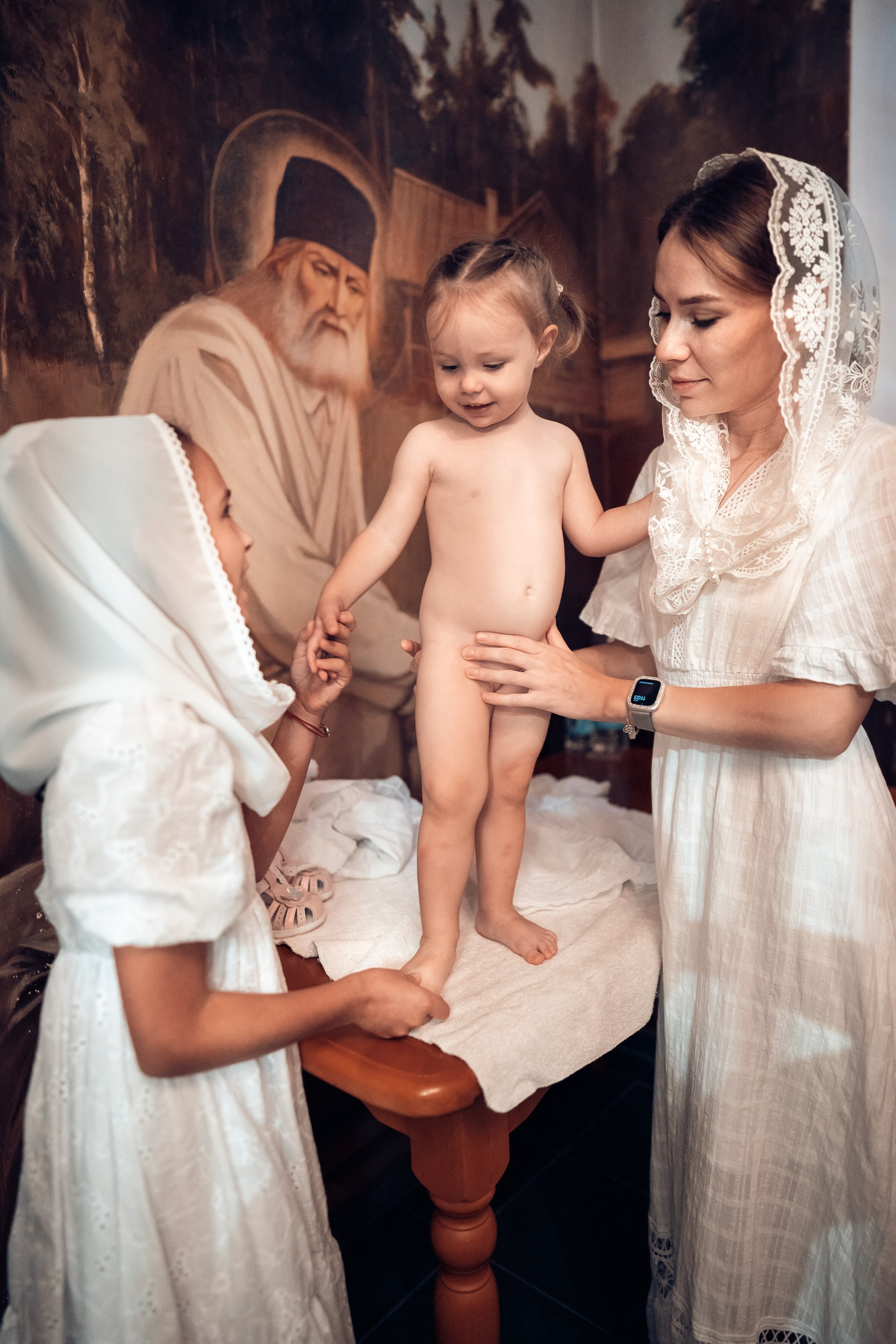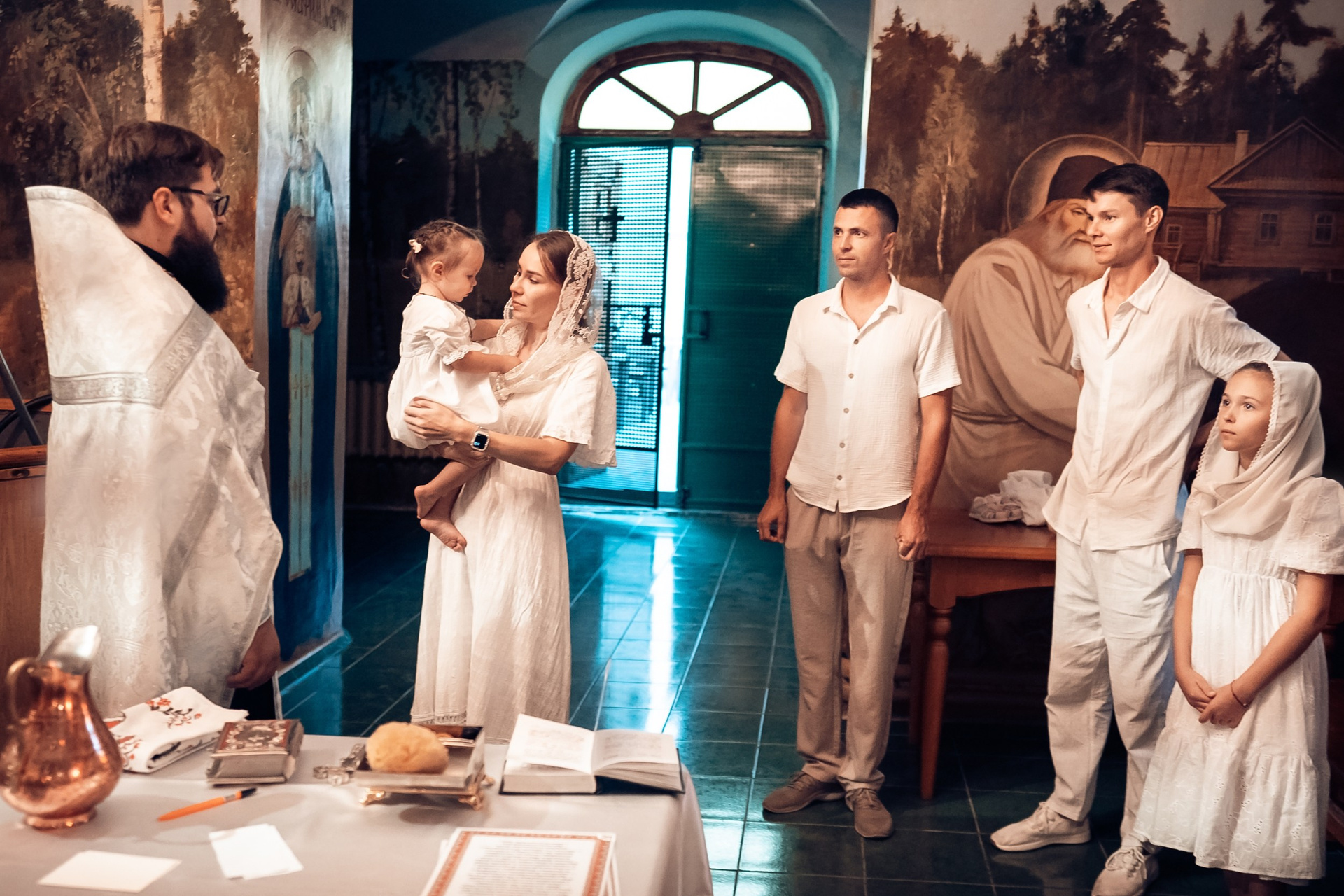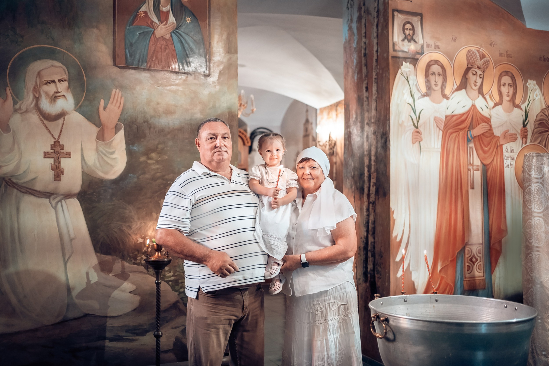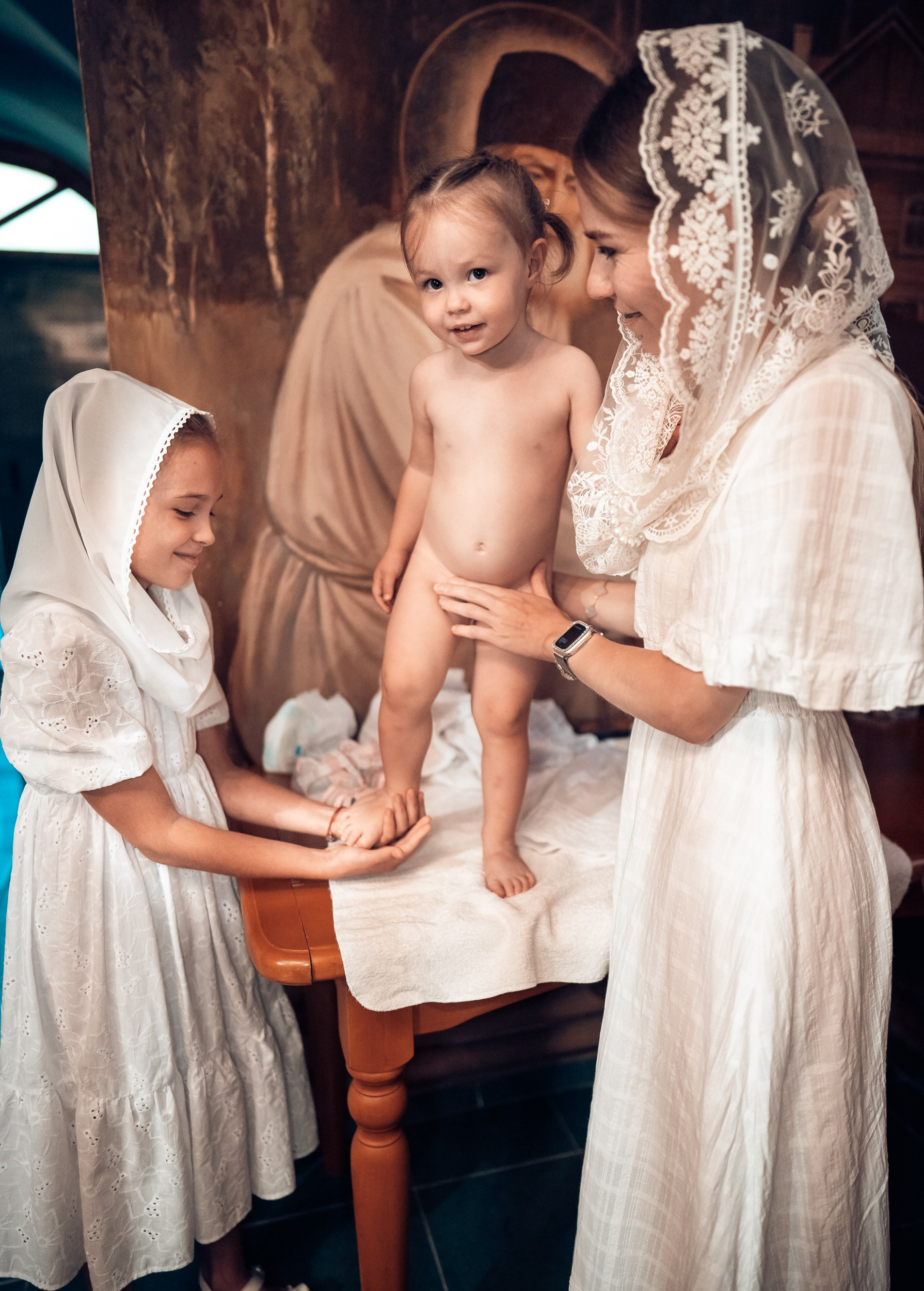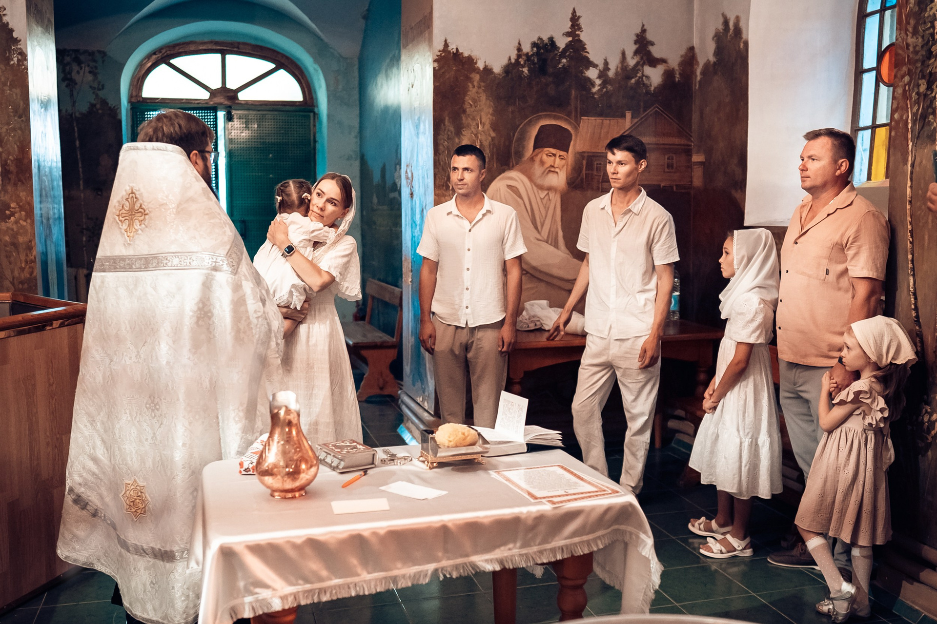 Репортажная съемка основных действий Таинства крещения и постановочная съемка с родными в храме и на улице. Фотографии обработаны в авторской цветокоррекции (без детальной ретуши). Срок выполнения 12 дней.