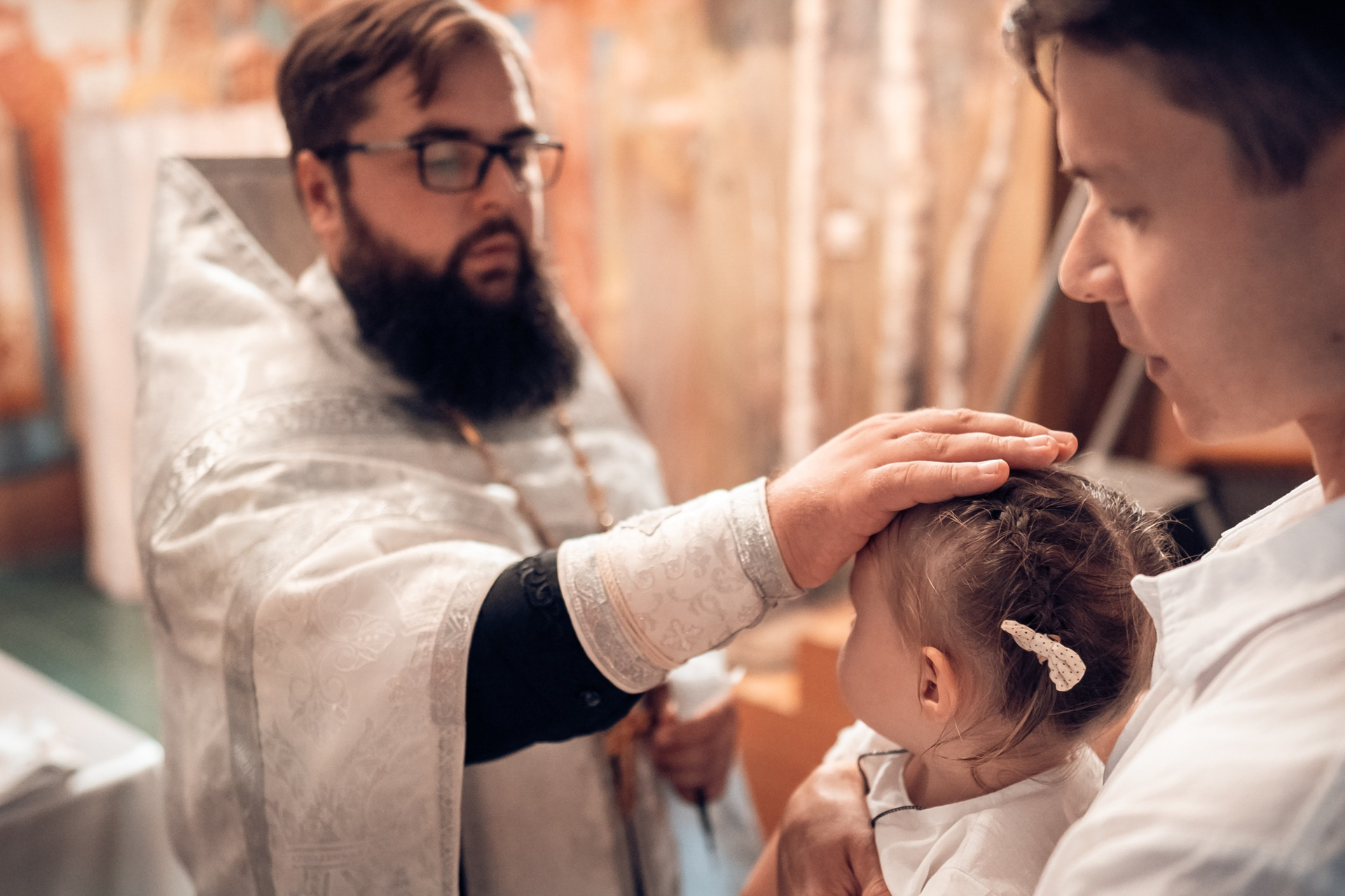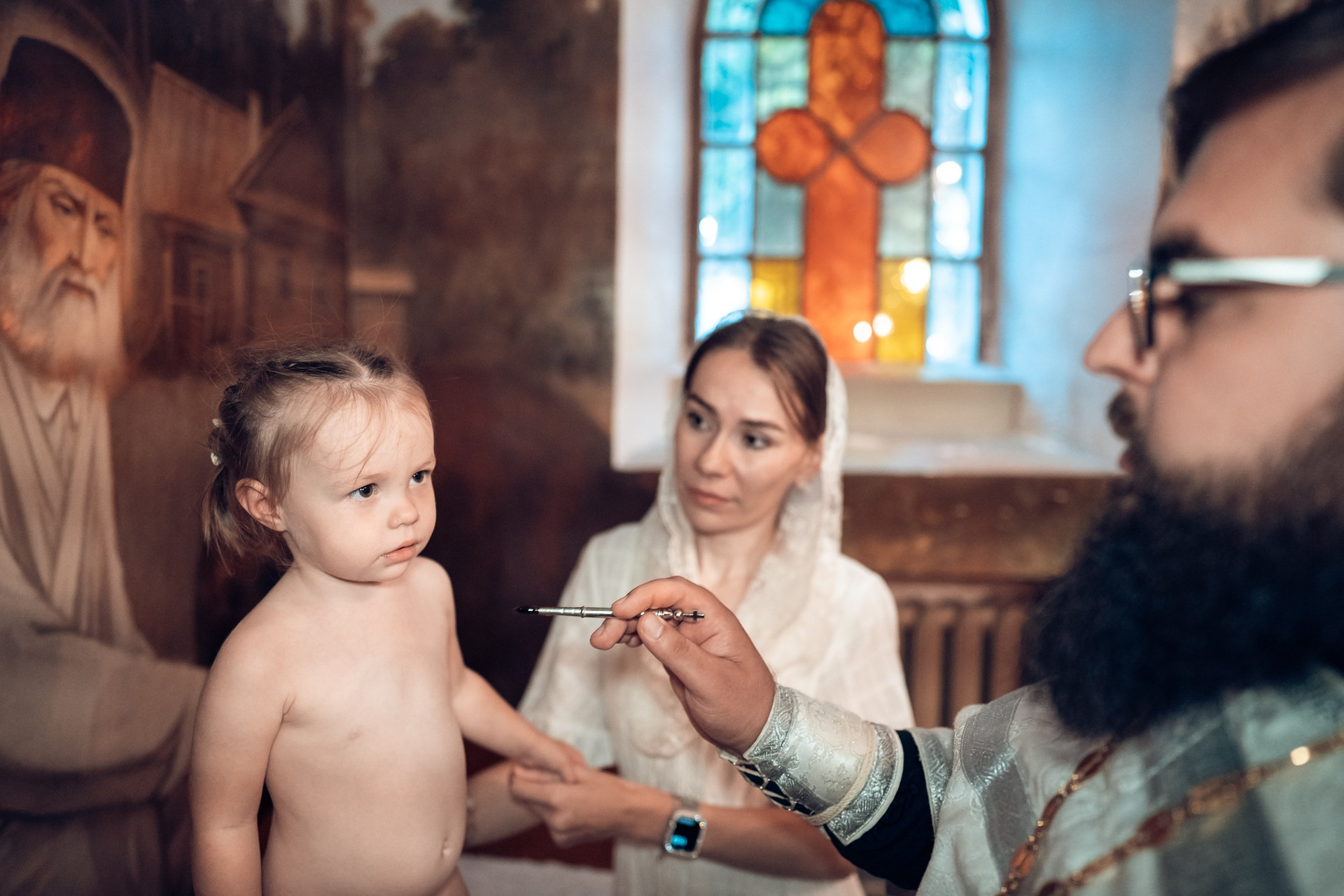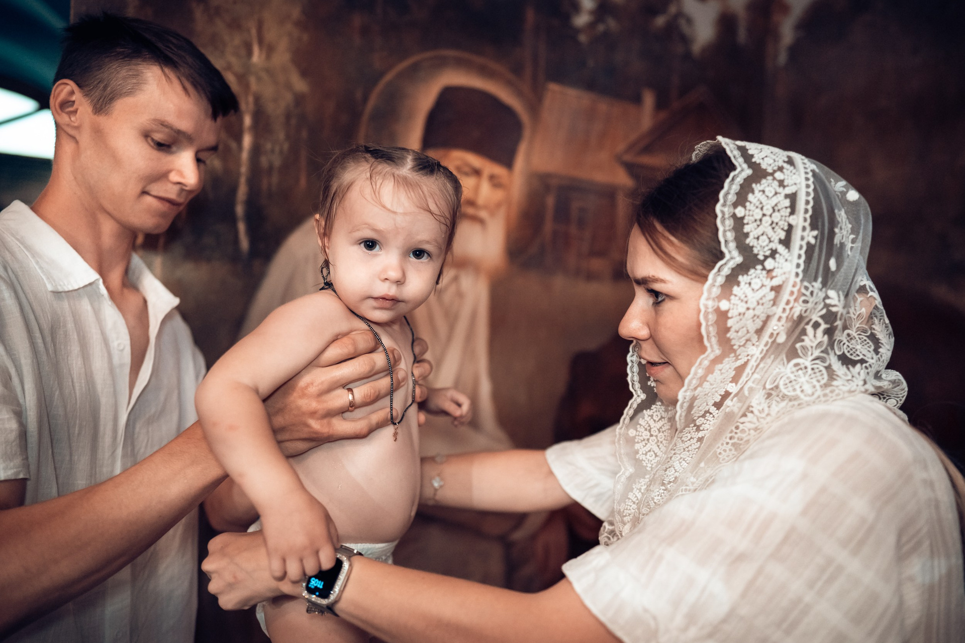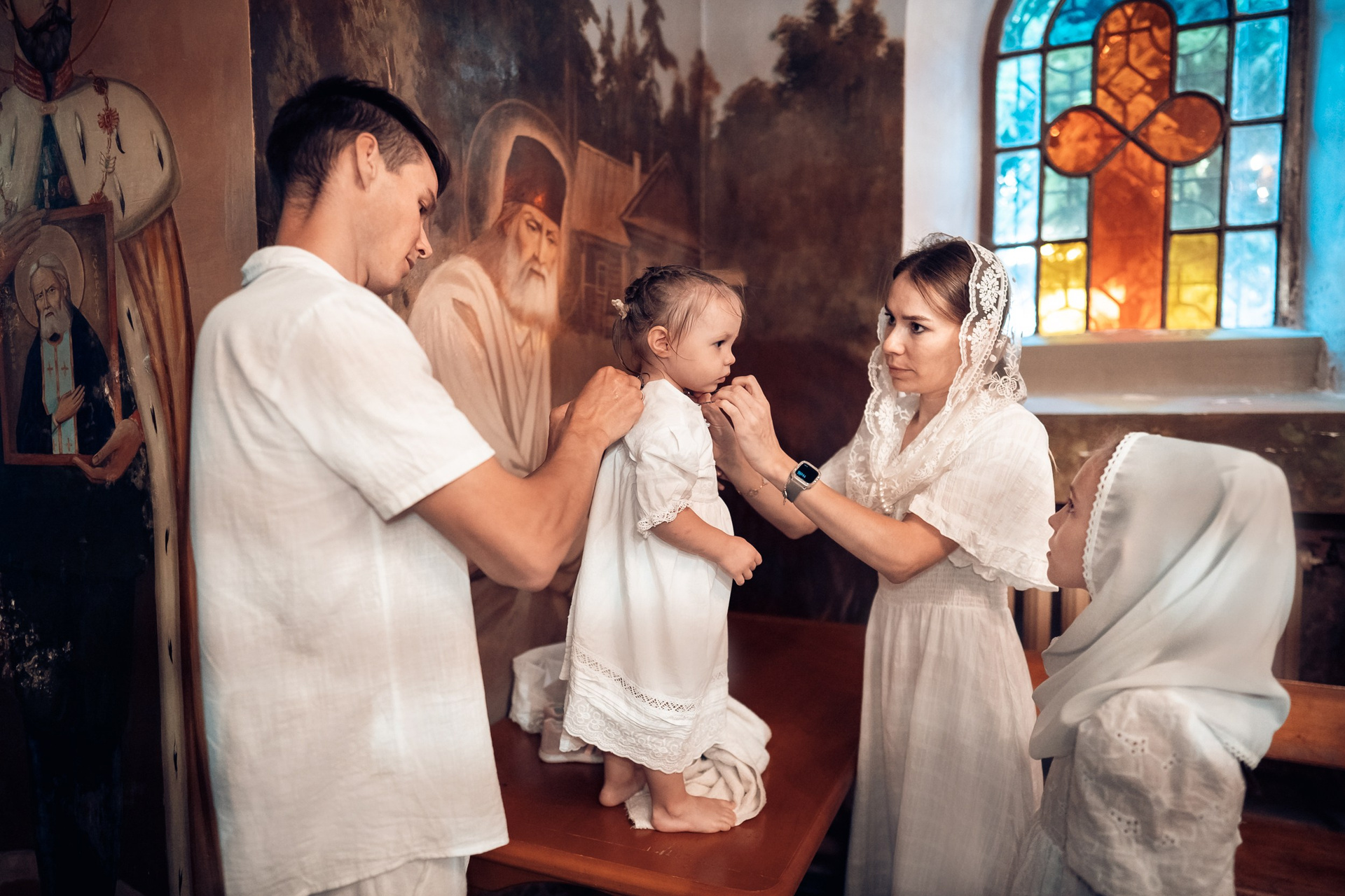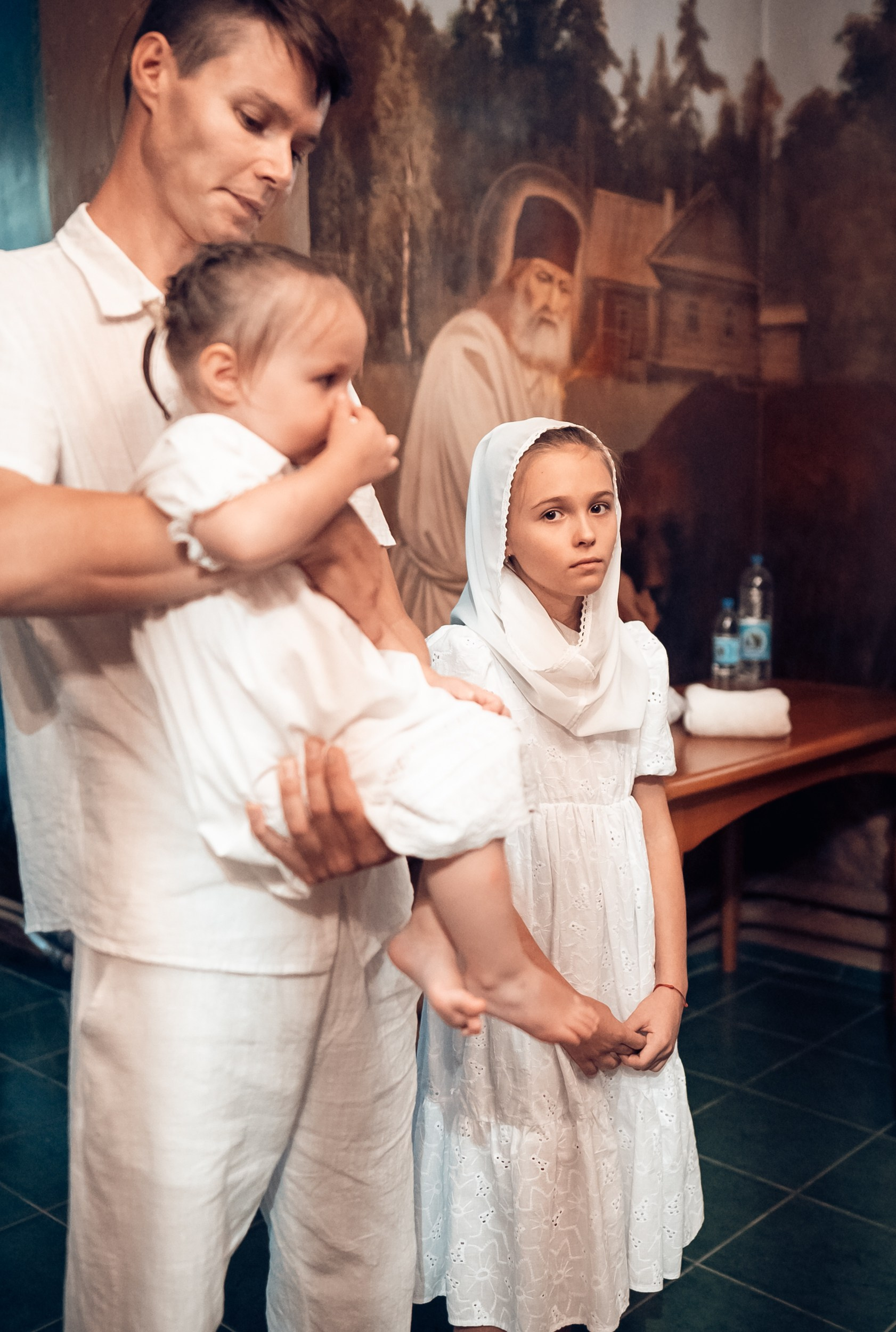 Репортажная съемка основных действий Таинства крещения и постановочная съемка с родными в храме и на улице. Фотографии обработаны в авторской цветокоррекции (без детальной ретуши). Срок выполнения 12 дней.