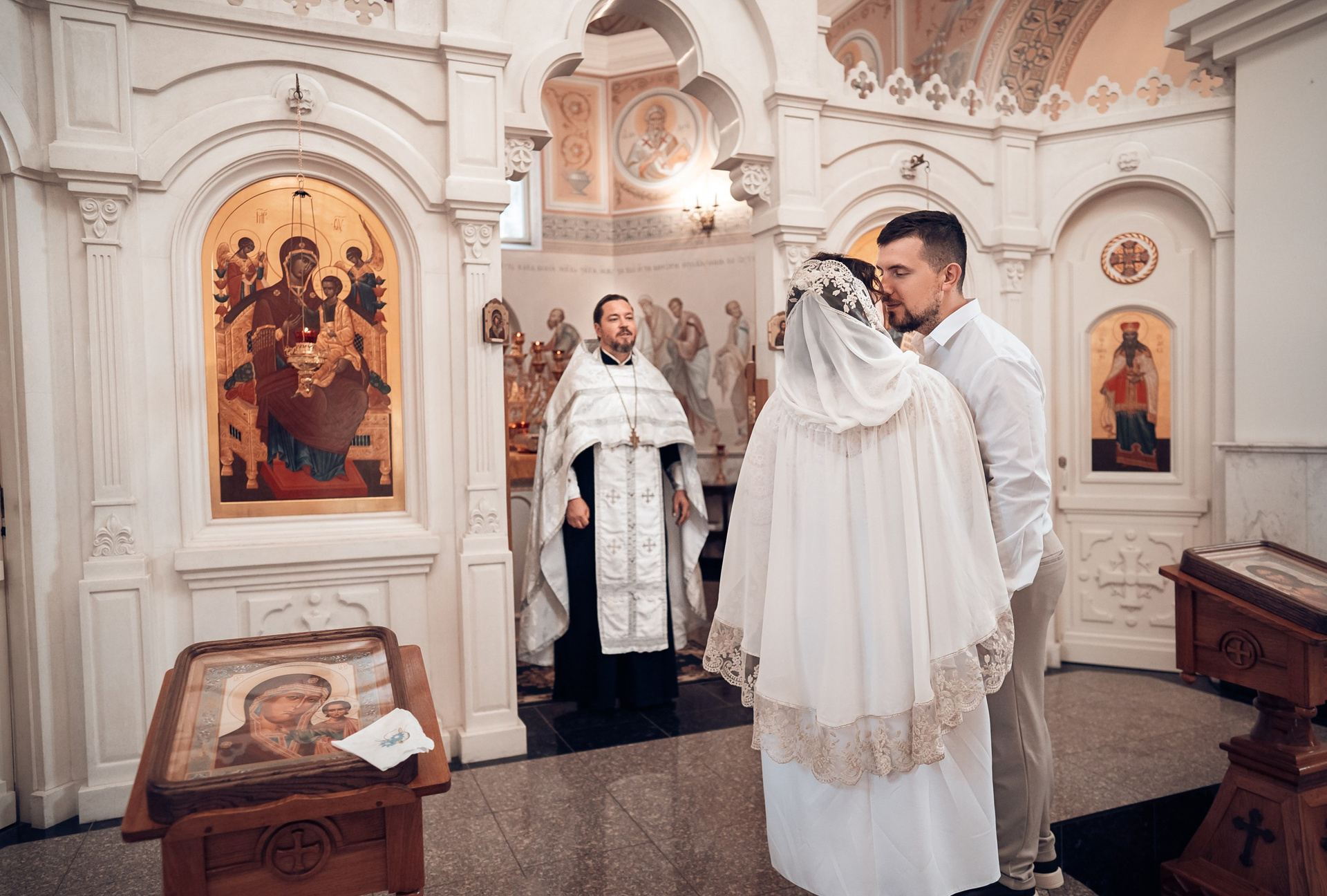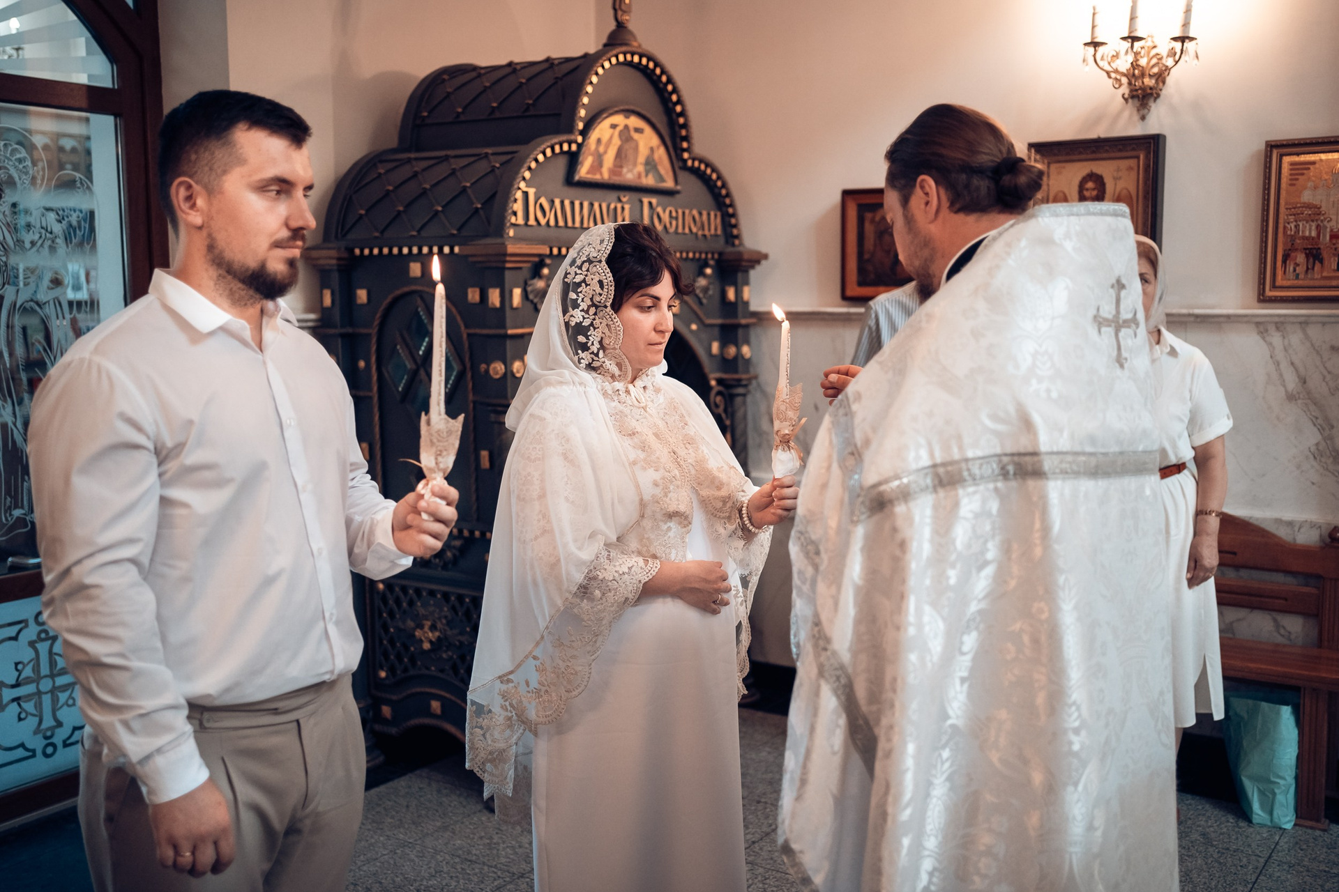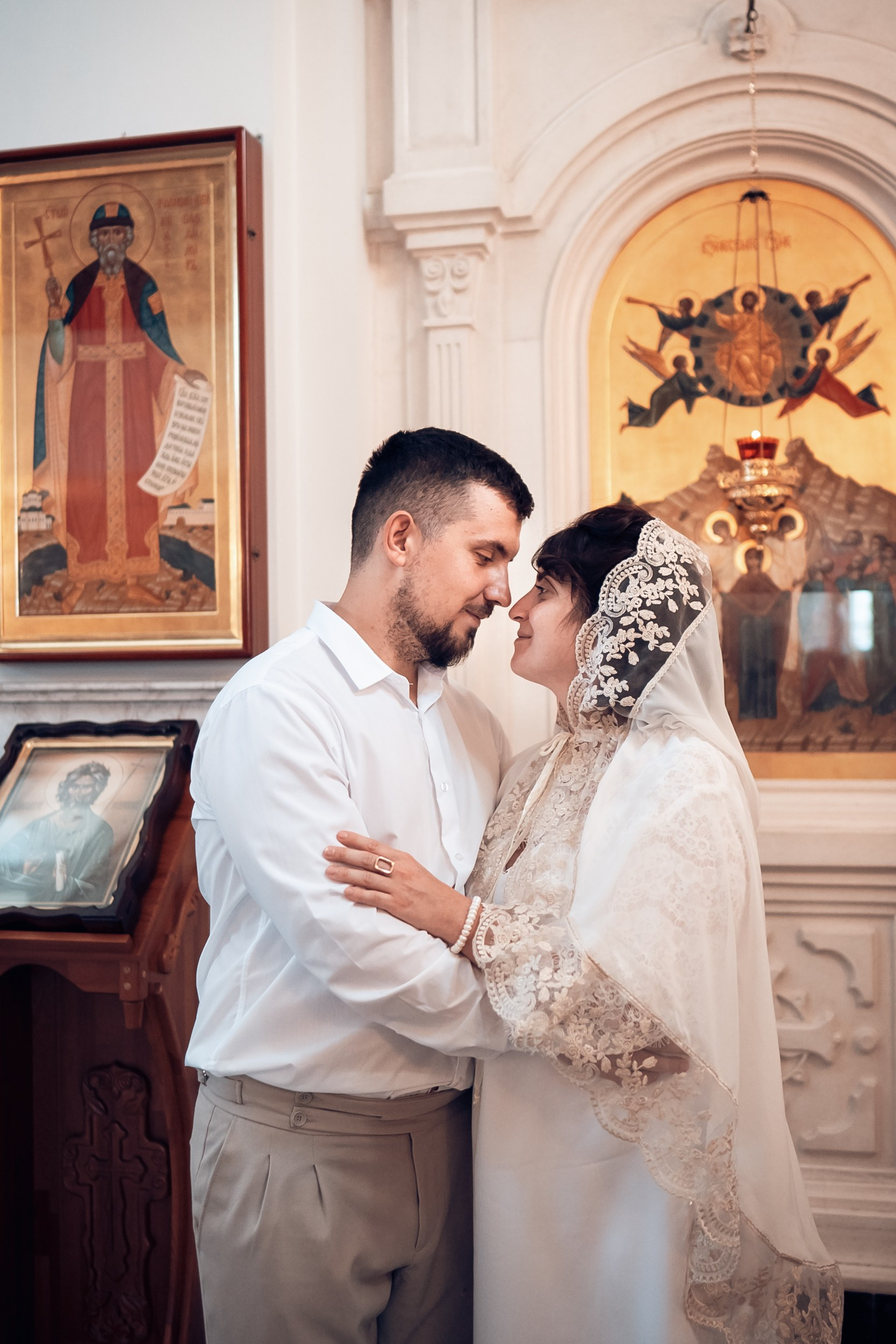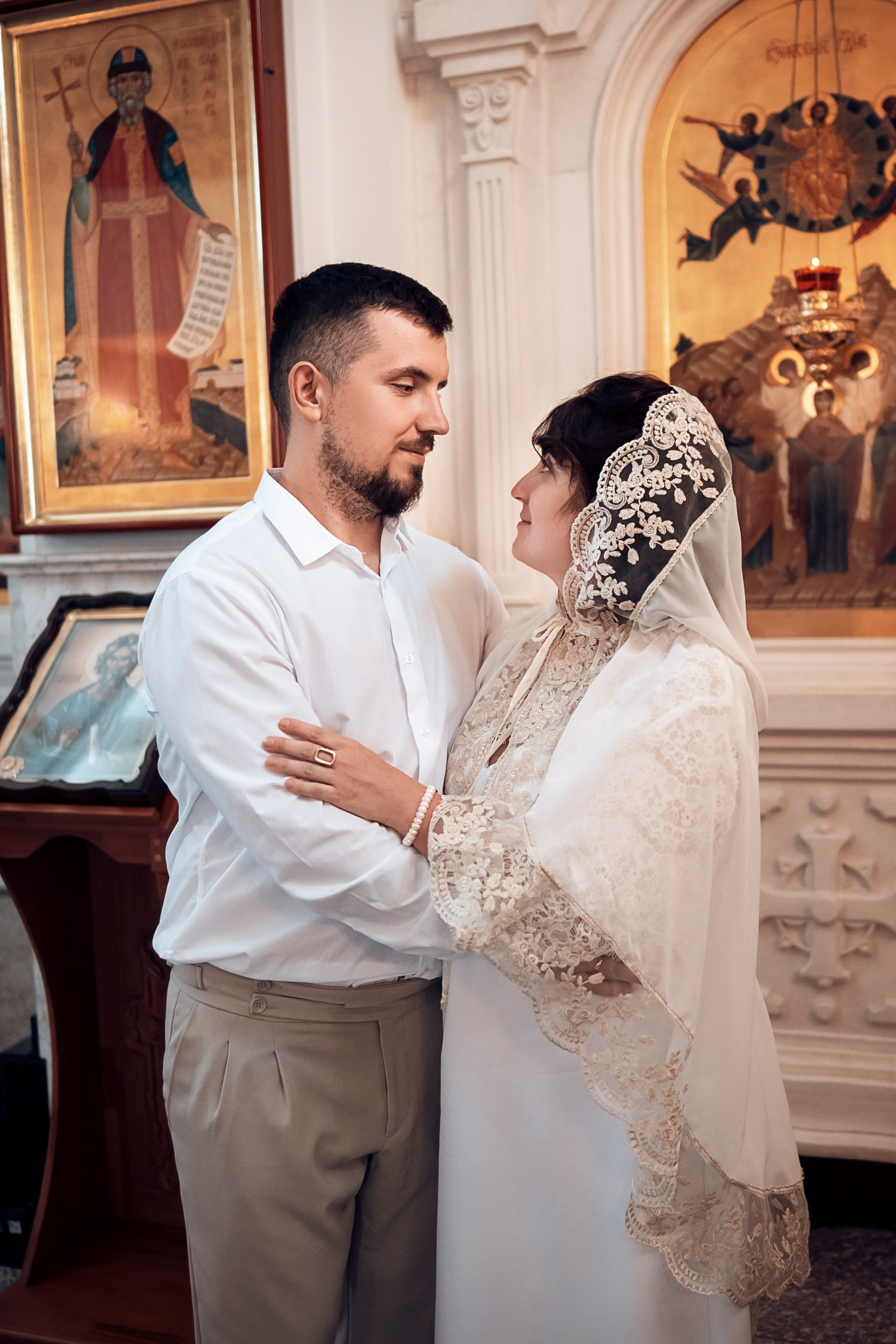 Красивая фотопамять получена благодаря отличной подготовке в одежде супругов, искренняя любовь к другу другу, трепетное отношение к важности Таинству, полноценное доверие фотографу.