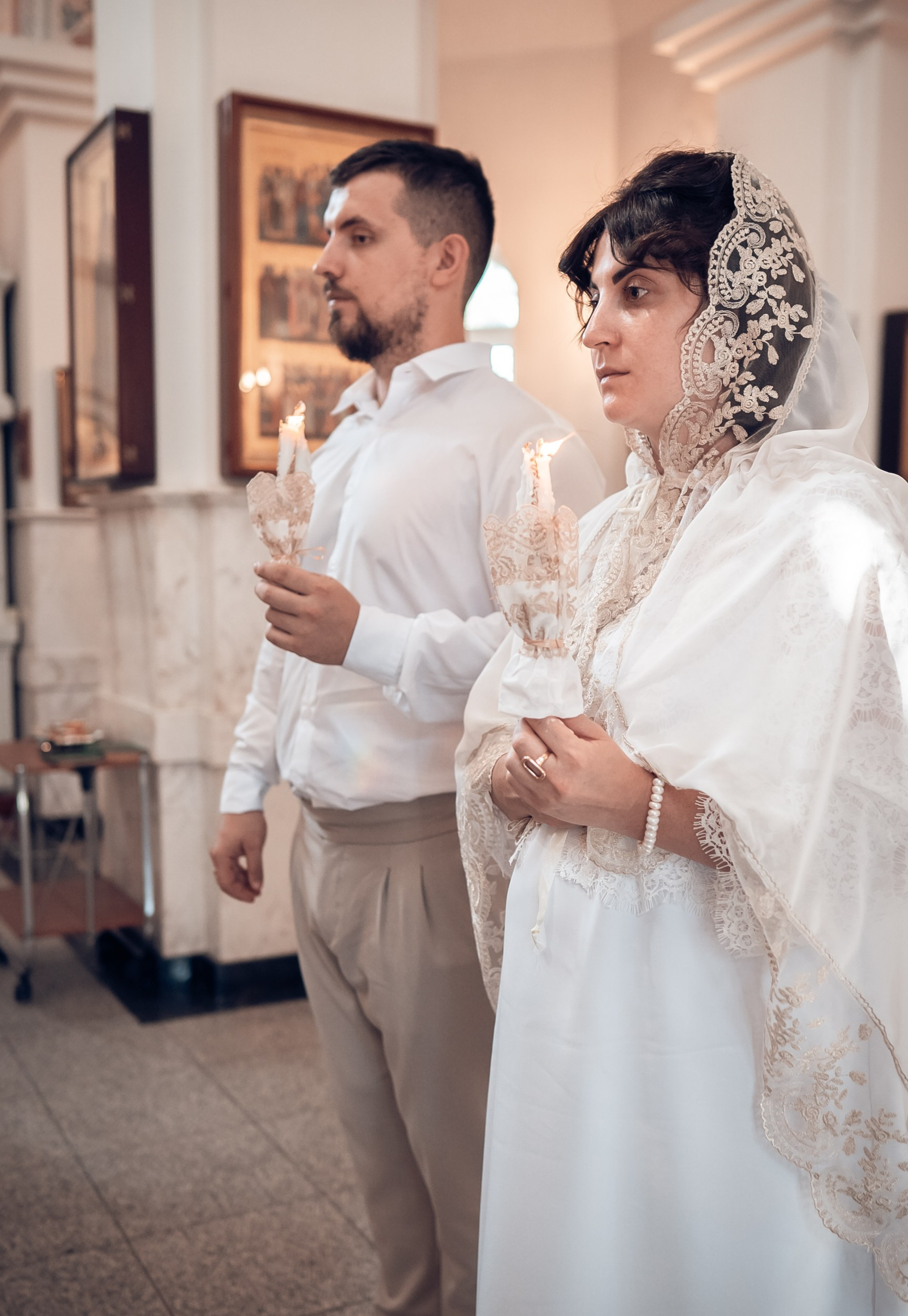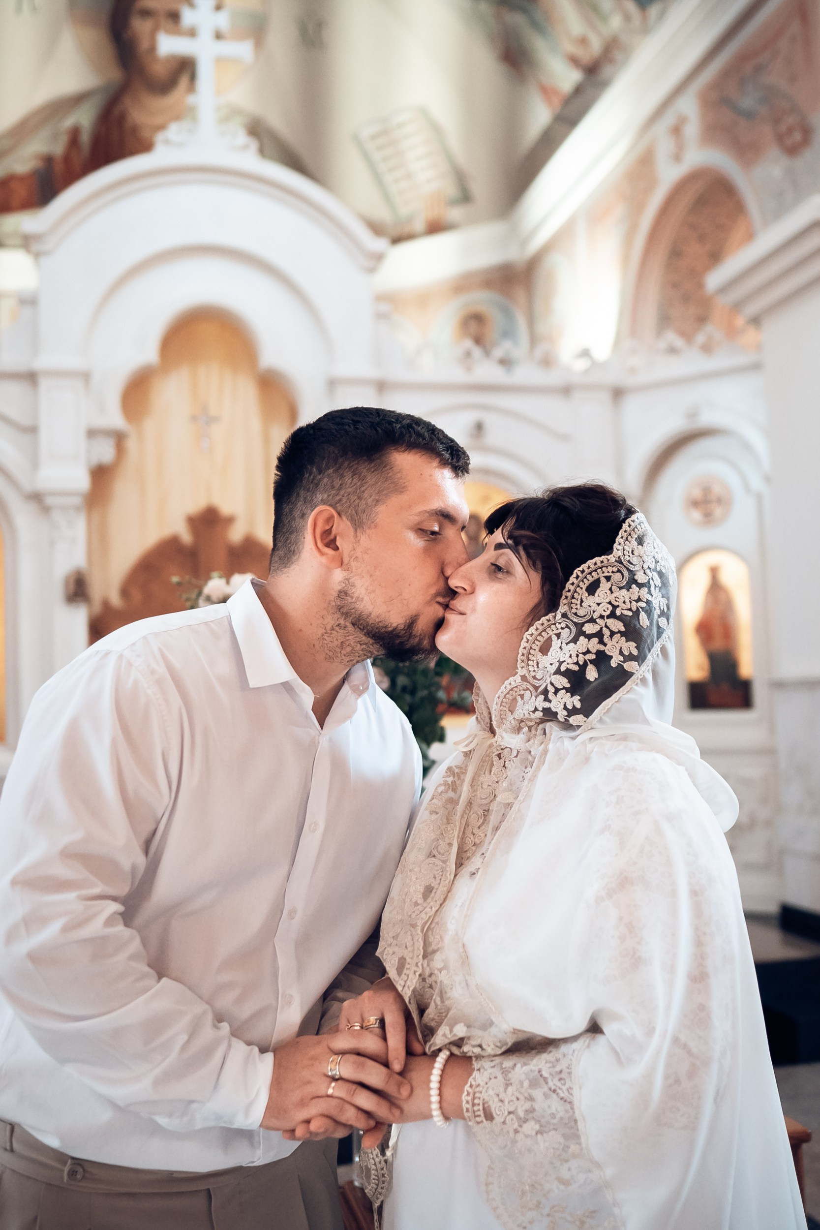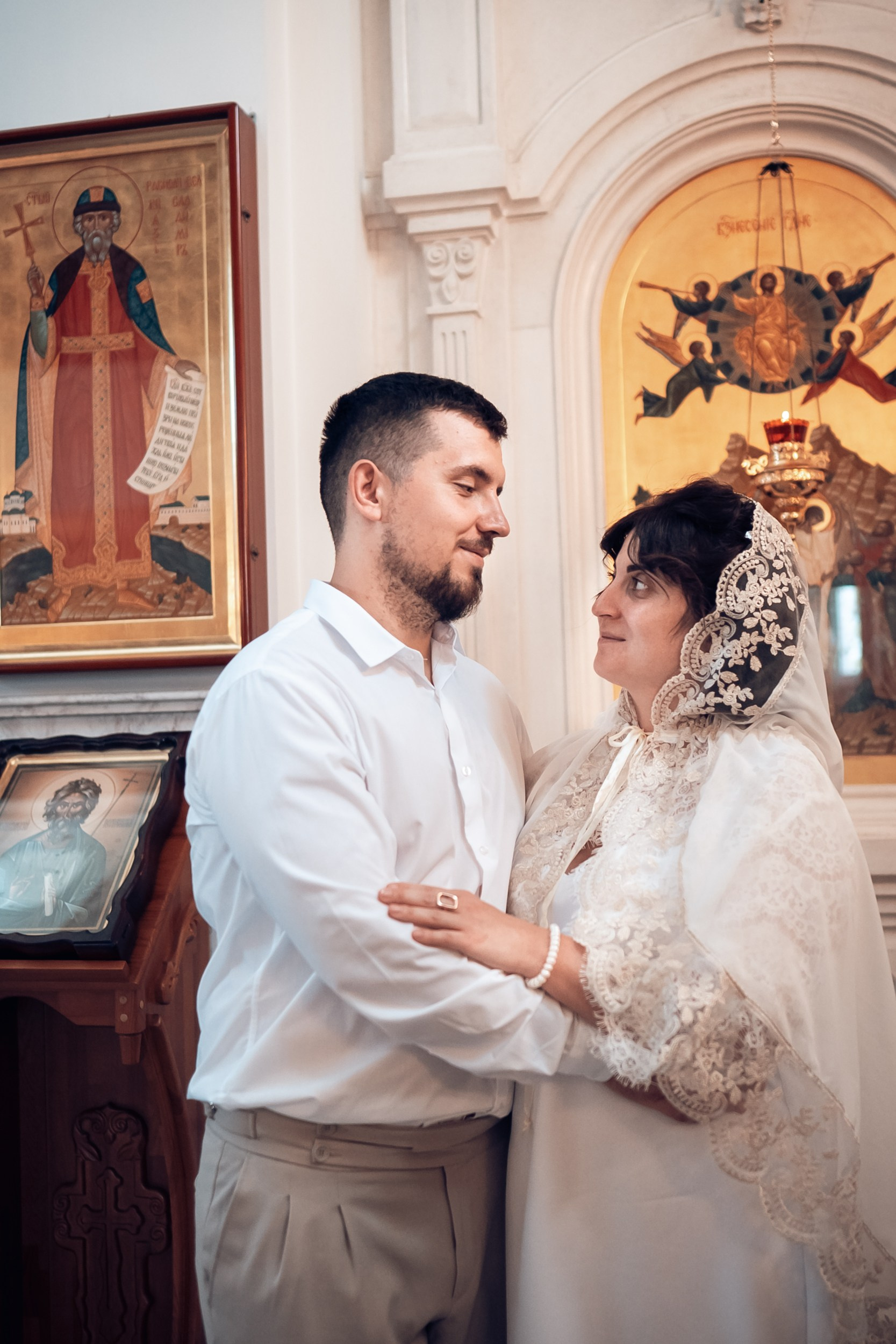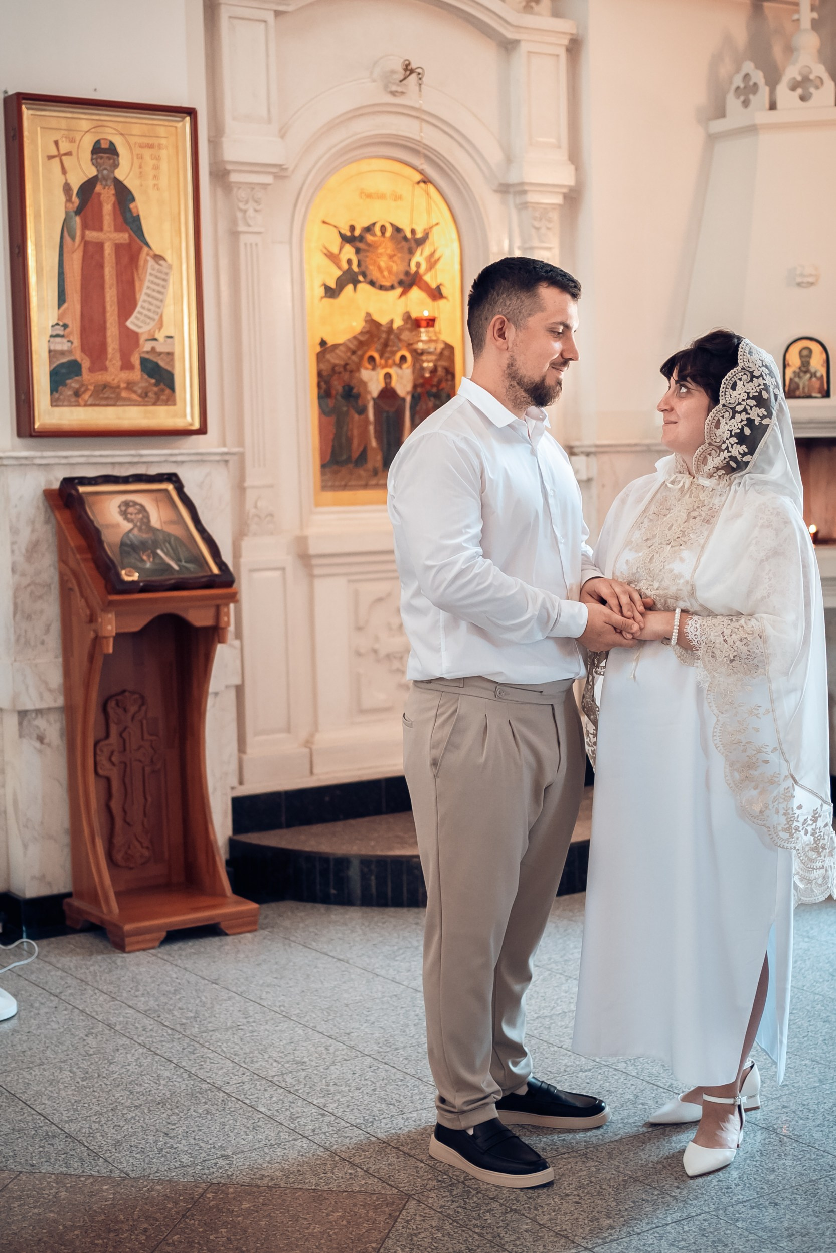 Красивая фотопамять получена благодаря отличной подготовке в одежде супругов, искренняя любовь к другу другу, трепетное отношение к важности Таинству, полноценное доверие фотографу.