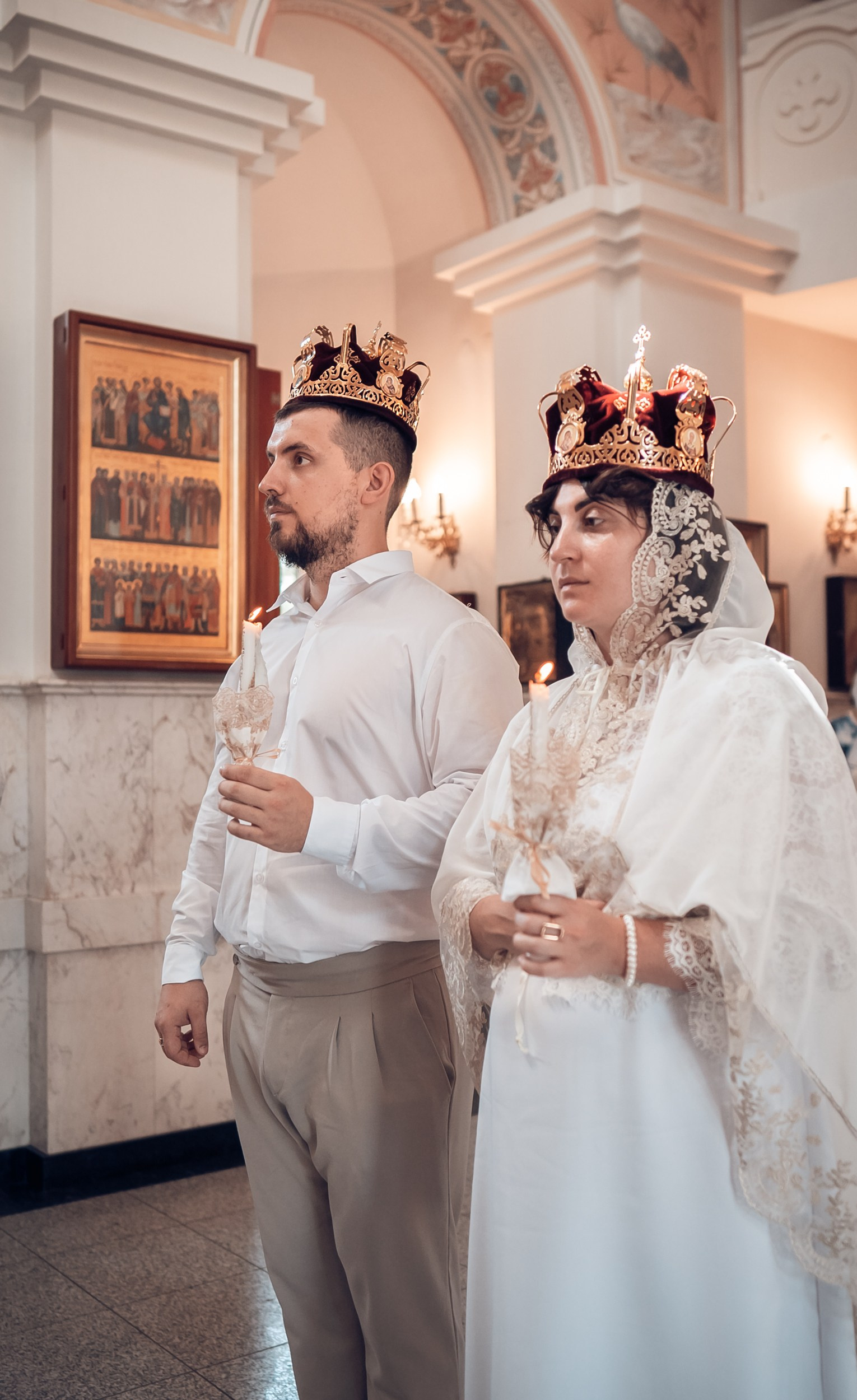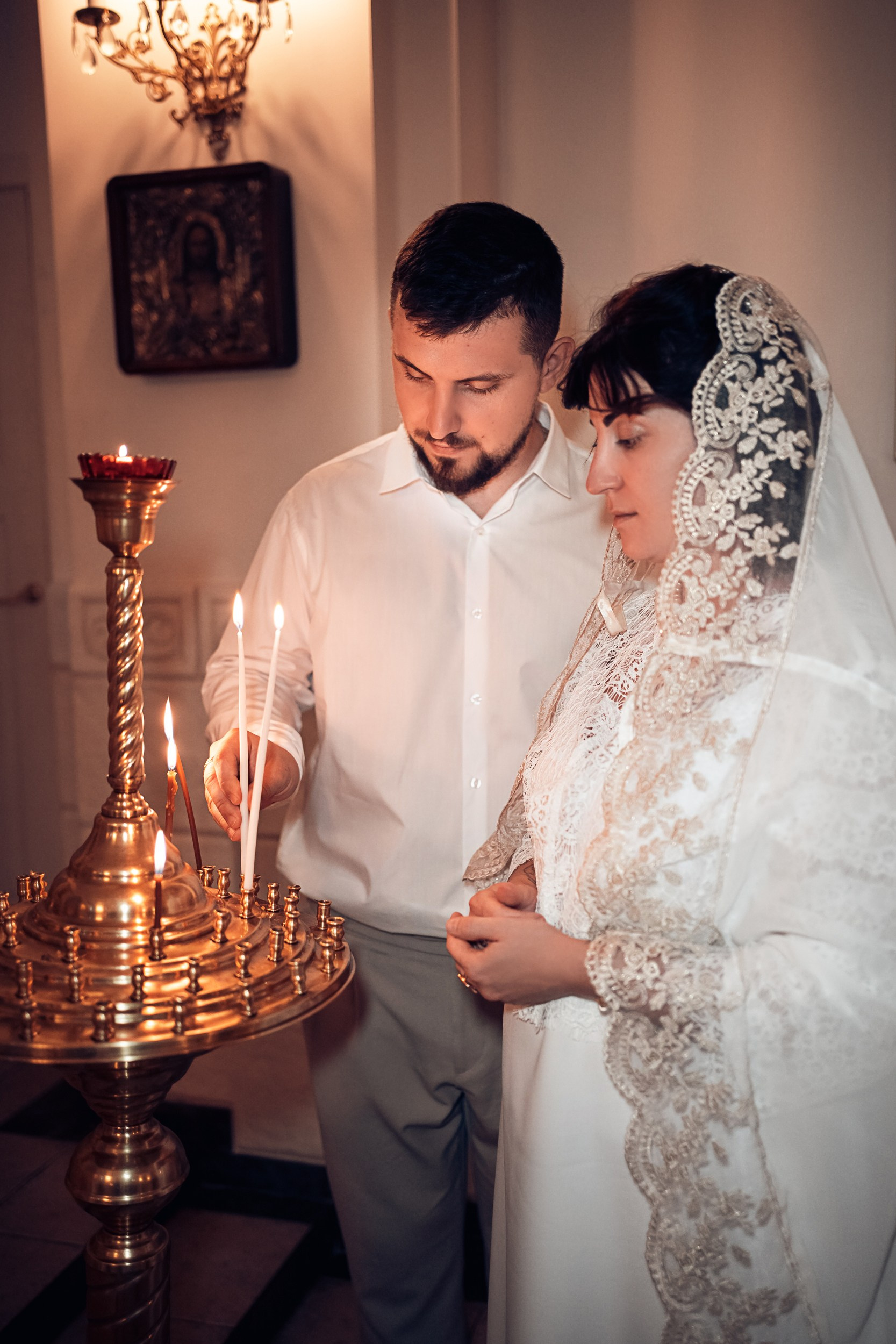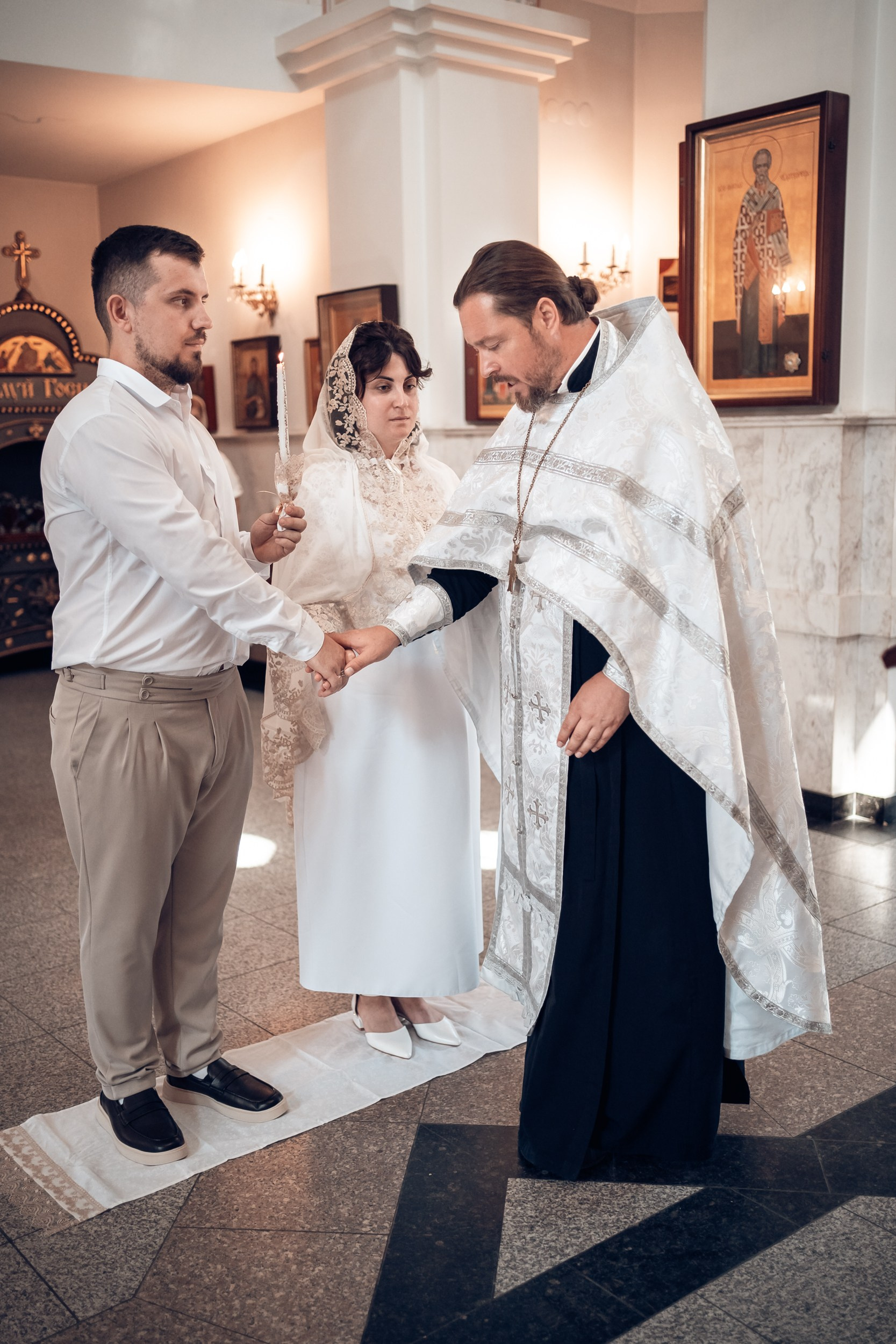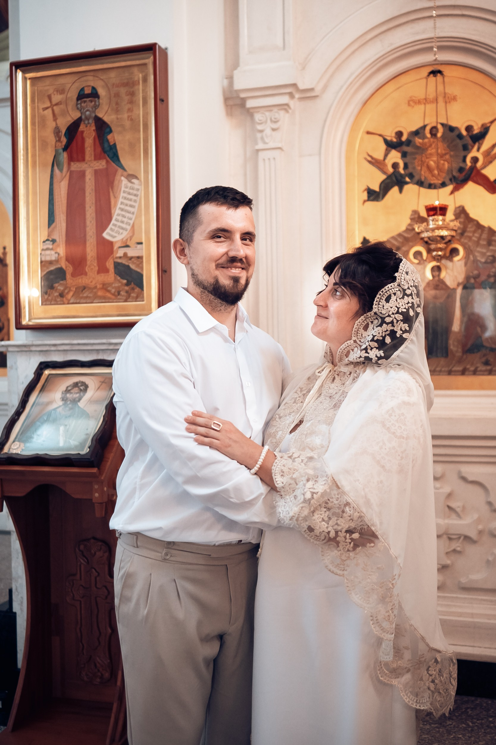 Красивая фотопамять получена благодаря отличной подготовке в одежде супругов, искренняя любовь к другу другу, трепетное отношение к важности Таинству, полноценное доверие фотографу.